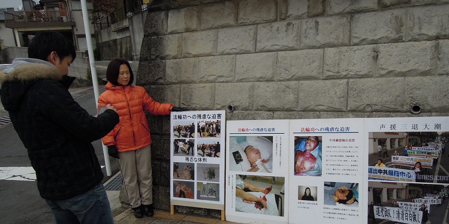 自一九九九年七月中共无端残酷迫害法轮功至今已进入第十四个年头。为了制止迫害,日本法轮功学员每年必在岁末年初这个具有特殊意义的时刻,克服各种困难,来到中领馆前用和平的方式抗议中共迫害。