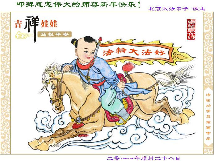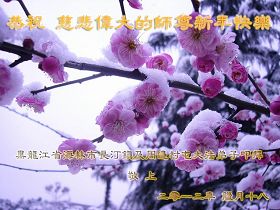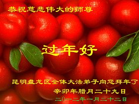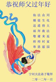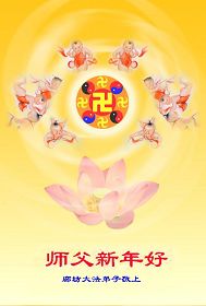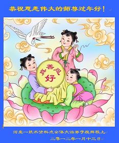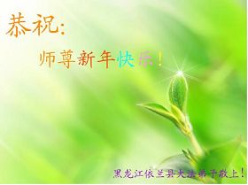 我是一名吉林省吉林市船营区大法弟子,在此新年来临之际,恭请师父新年快乐!在今后有限时间里,一定做好三件事,请师父放心。