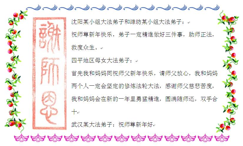 师父新年好!我们长春弟子一定按照师父的要求做好三件事,修好自己,走好最后的正法之路。