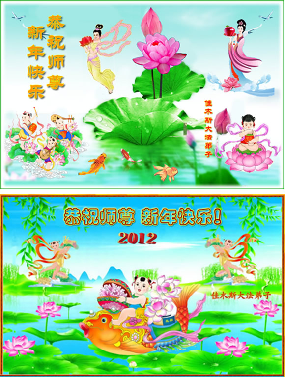 【明慧网二零一二年一月二十二日】从二零零一年开始,世界各地的大法弟子纷纷在中国新年之际,将发自内心的节日贺词、自制的贺卡、诗歌等寄给明慧网,向慈悲伟大的师尊李洪志先生恭祝新年快乐。这里收集的是壬辰年(二零一二年)新年东北三省大法弟子发来的146条贺词贺卡。
