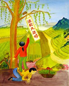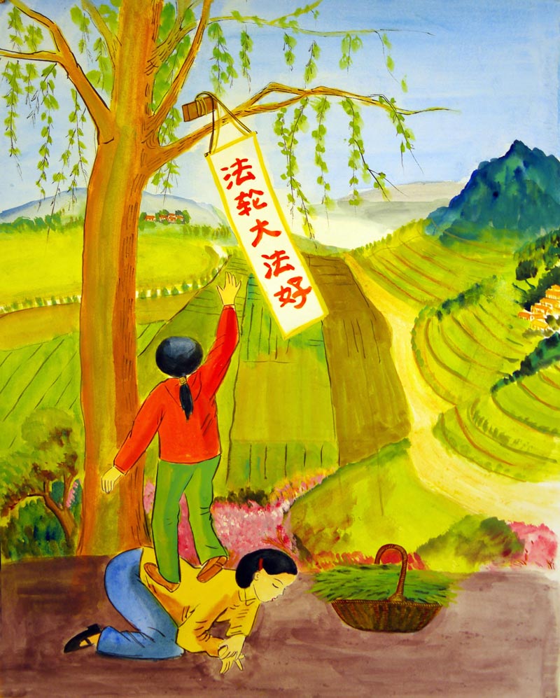 到了派出所我没下车,他们把我强行拖下车,又拖進屋里。他们叫来所长,所长说,你喝点水咱们聊聊。我没理会他。过会儿他又说,象你这样的我把你送去坐牢很容易,否则就办学习班。我没有说话,又过一会,他们没办法了。所长对村公安说,你能不能保证她不去北京?你能不能替她写个保证书?村公安不写,却使劲的拽着我的胳膊摇晃着问我,我替你写行不行?我没说话,但心里却想着,我也决不允许众生对大法犯罪。尽管他一直参与迫害,尤其对我,但我对他没有过一丝怨恨。