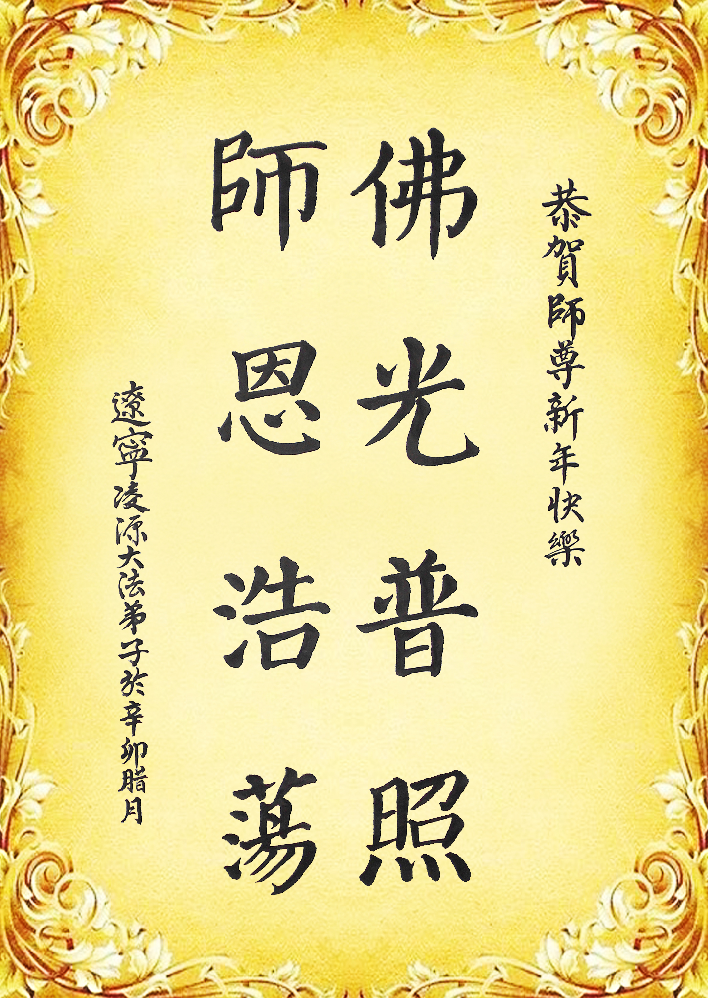 新年到来之际,您的弟子恭祝慈悲伟大的师尊新年快乐!并让师尊放心,弟子会听师父的话,做好三件事,助师正法,救度众生。完成史前大愿。