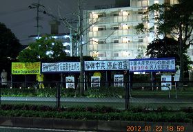 【明慧网二零一二年一月二十四日】二零一二年一月二十三日黄历的大年除夕,日本九州地区的法轮功学员们聚集中领馆前,点燃蜡烛悼念被中共迫害致死的大陆法轮功学员,并抗议中共对法轮功已经持续十二年多的残酷迫害。