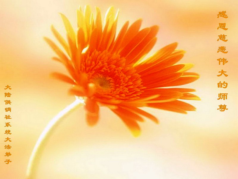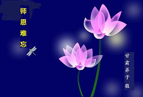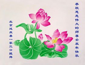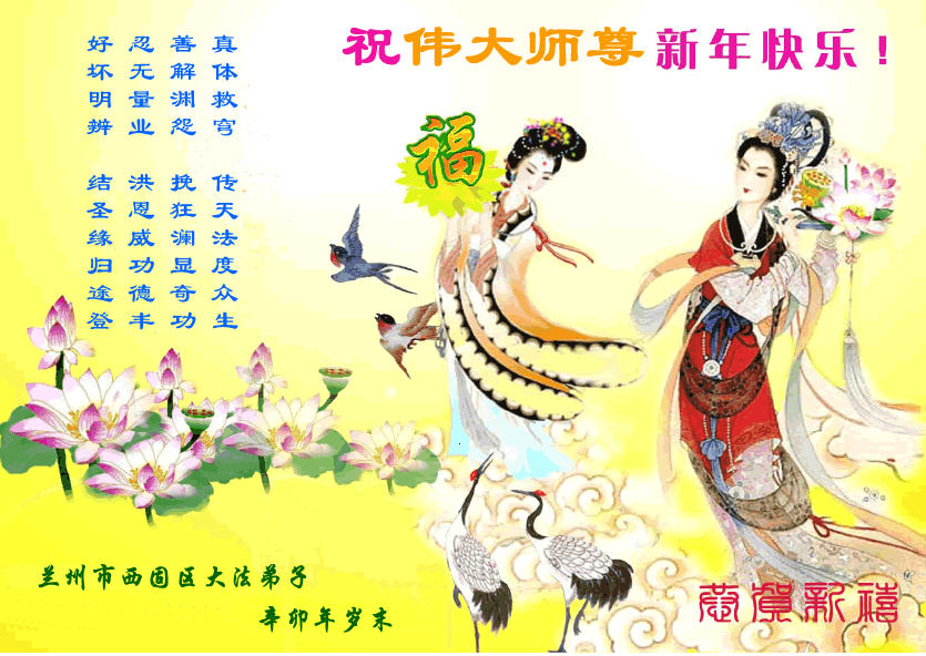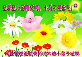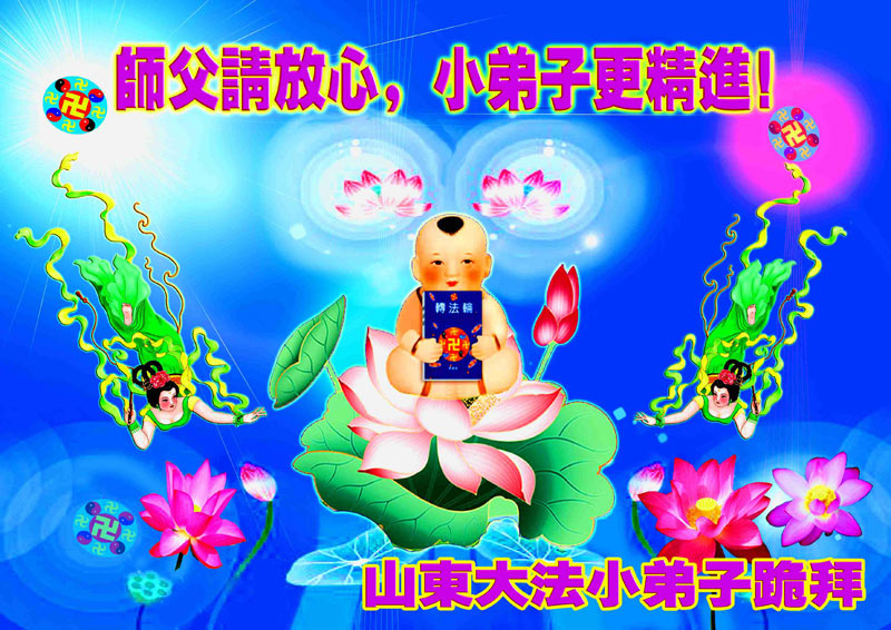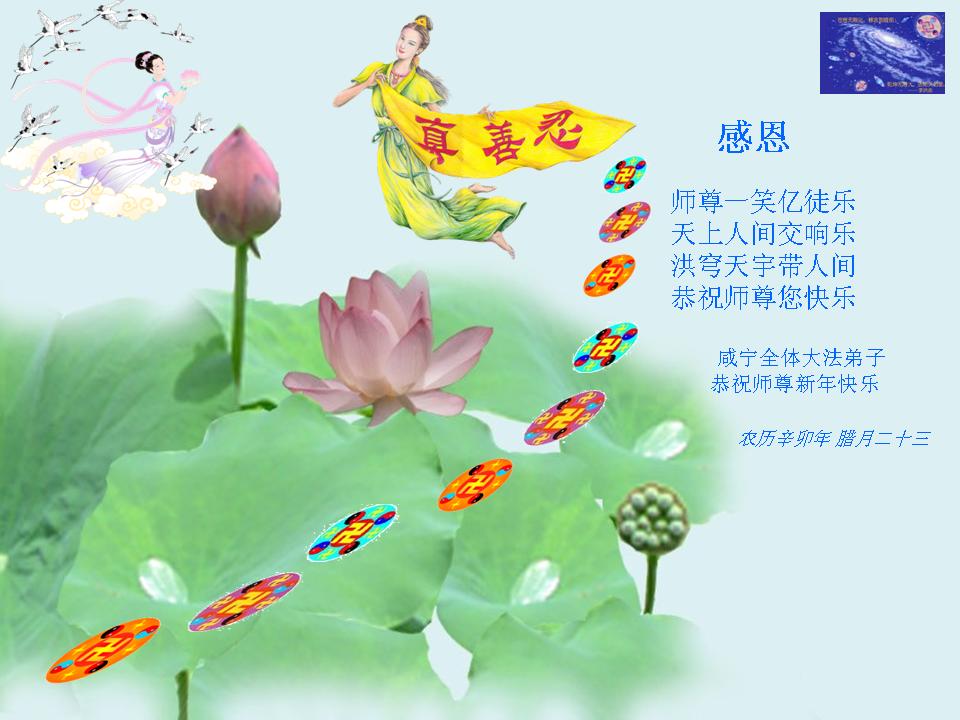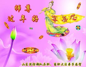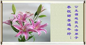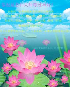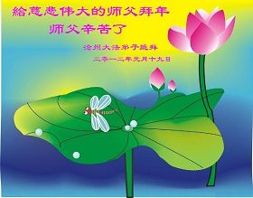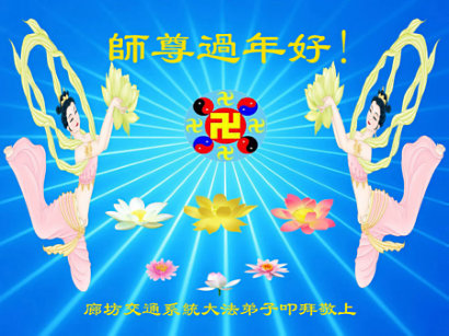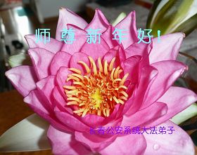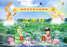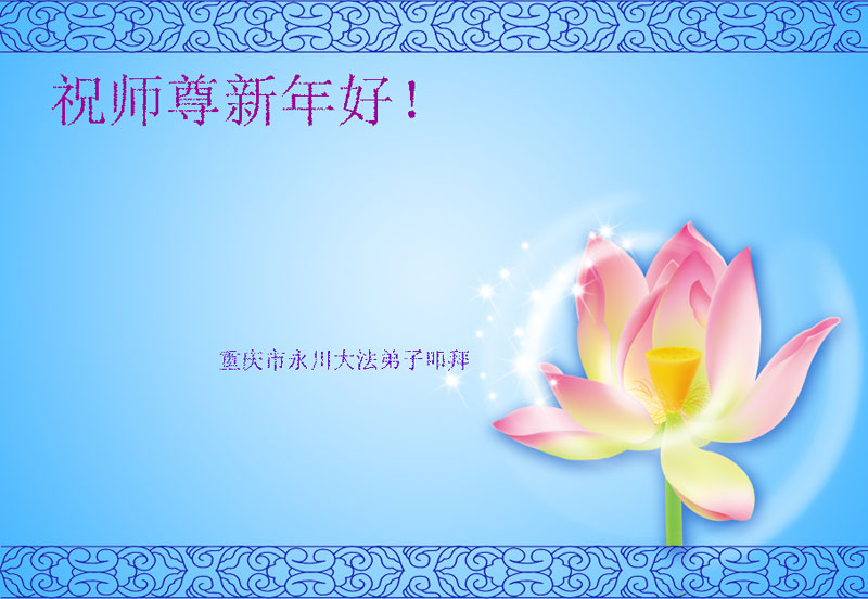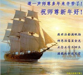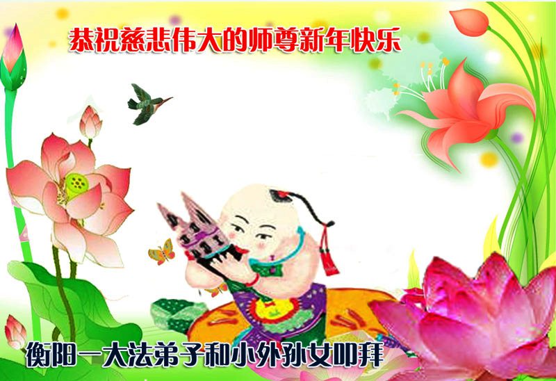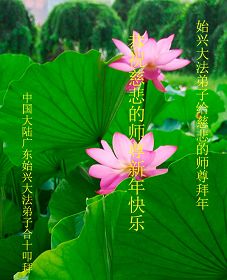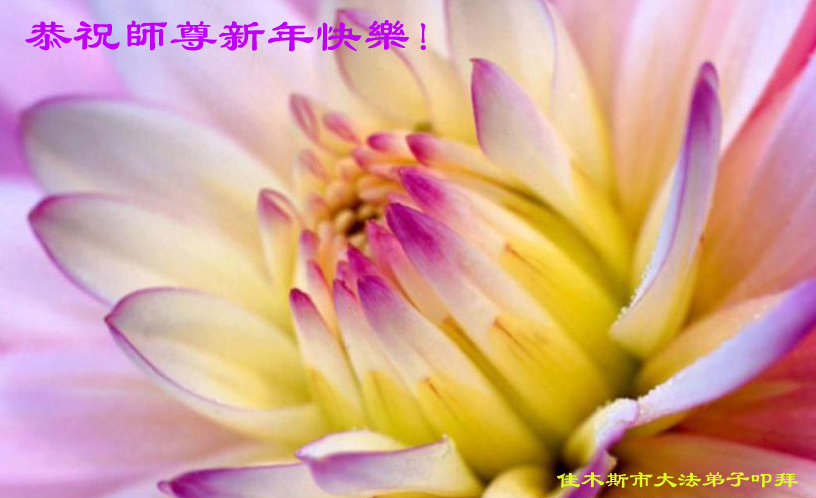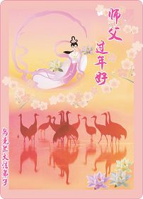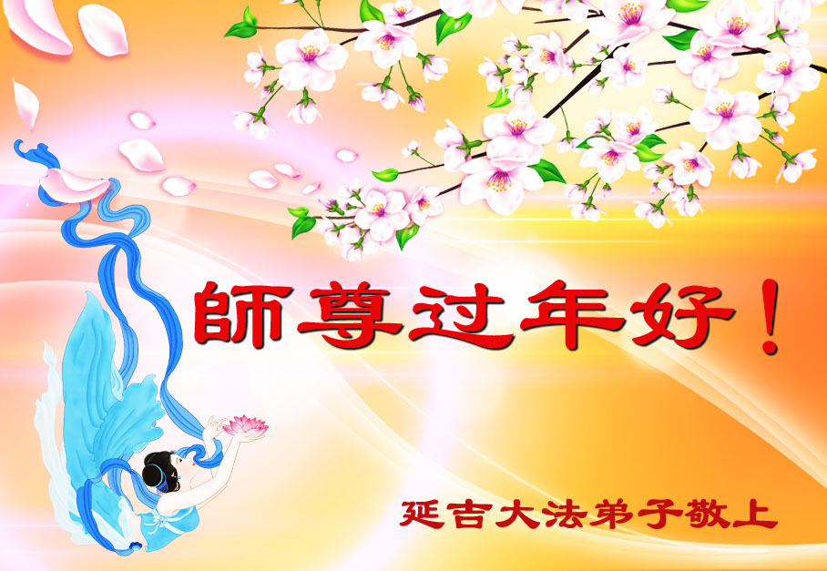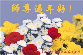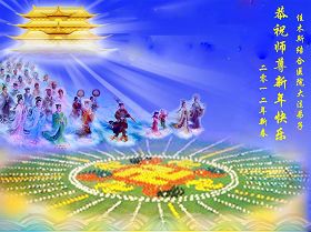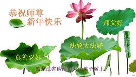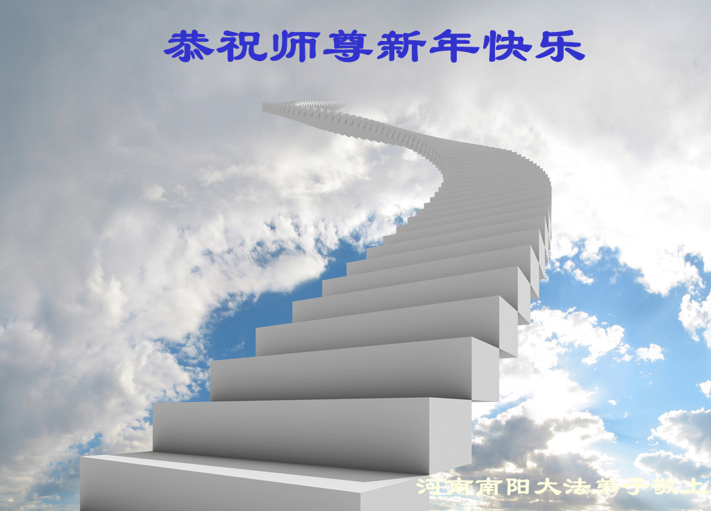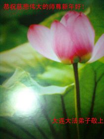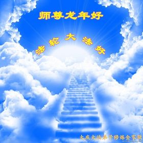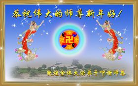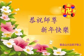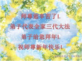 尊敬的师父好!师父辛苦了!您从地狱把弟子捞起洗净,给予弟子的,我千言万语都表达不尽对您的感恩。我在修炼的路上坎坎坷坷走到今天,我深知没有您的呵护,我就没有今天。我一定坚修大法到底跟师父一起回家,请师父放心。在新的一年里我一定勇猛精進,做好三件事。再次祝师父新年好!