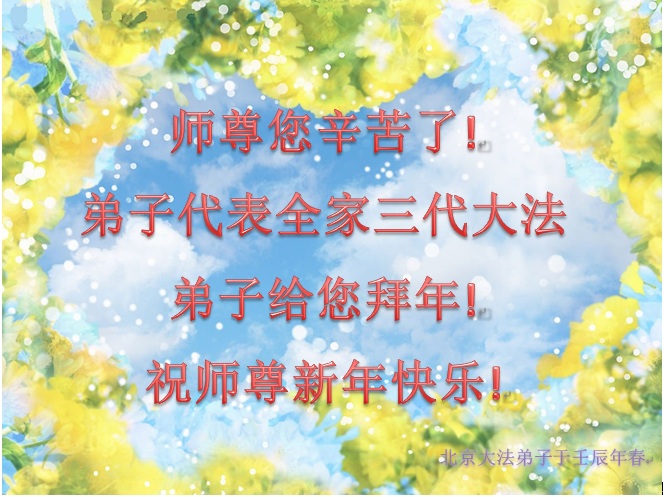 在这里弟子代表家人及身边相信大法的众生向伟大的师尊问一声:"新年好!您辛苦了!"