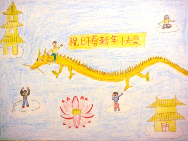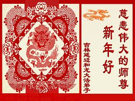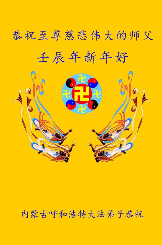 玉兔悄然离去,巨龙即将到来。一年过去了,请师尊在地球的那一边接受弟子一拜和我们的衷心祝愿吧:祝师尊过年好!请师尊放心,我们会永记史前大愿,加紧救人,随师回家。双手合十