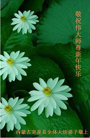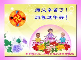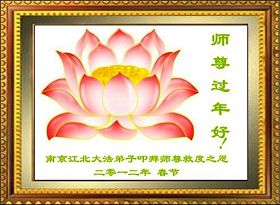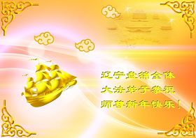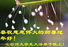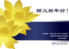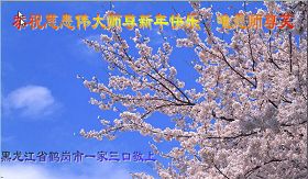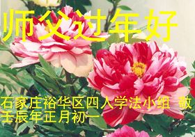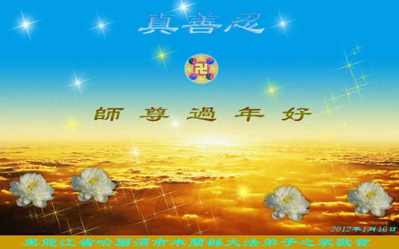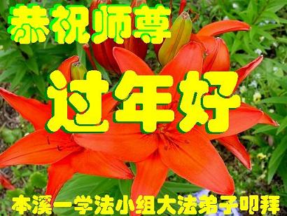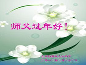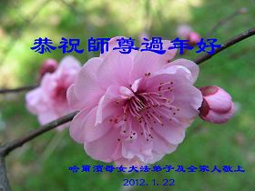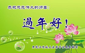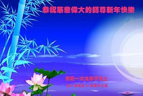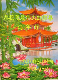 明慧同修好,在新年开始之际请你们替我和我母亲(同修)向师尊拜年。我只想真诚的对师尊说:“师父过年好”。谢谢!