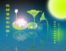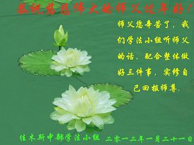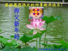 我代表我们学法小组的全体大法弟子:祝慈悲伟大的师父,新年快乐,一切如意。感谢师父救度,弟子一定精進做好三件事,让师父少一些担心多一些欣慰。
