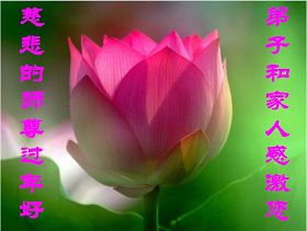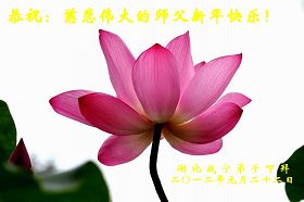 又逢佳节倍思亲!未曾提笔泪先流,遥祝远在大洋彼岸的慈悲伟大的师尊新年好!千言万语也表达不尽对师尊的无限感恩,只有再精進,遵照师尊的教诲,向内找实修自己,做好三件事,让师尊多一份欣慰,少一份辛苦。多救人,早日恭迎师尊回家乡!