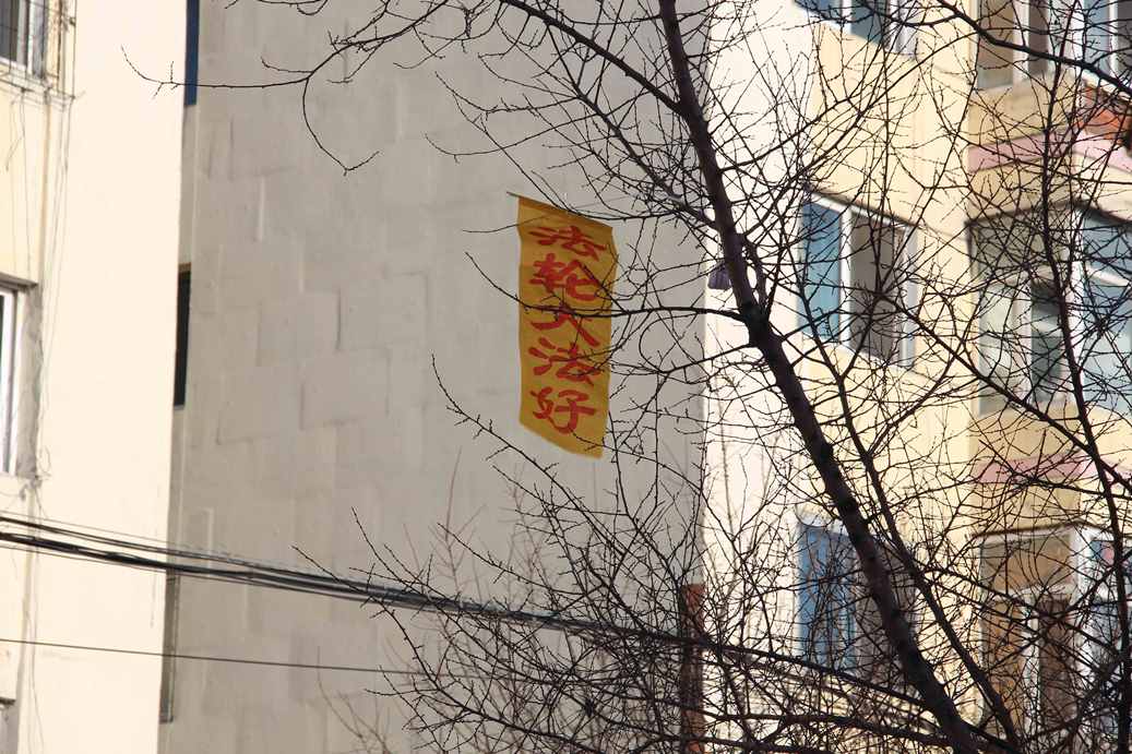 新年期间大陆某地出现真相条幅和神韵光盘海报