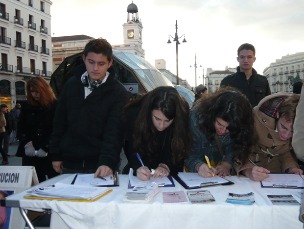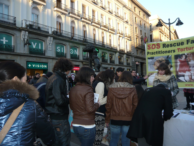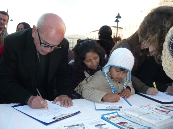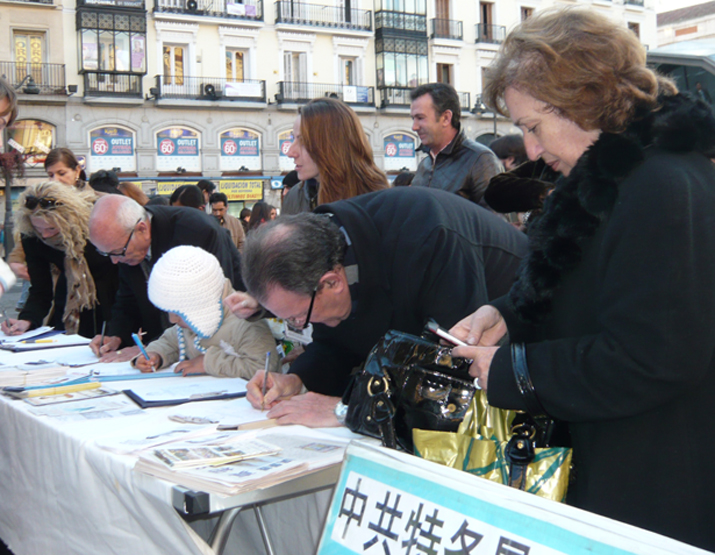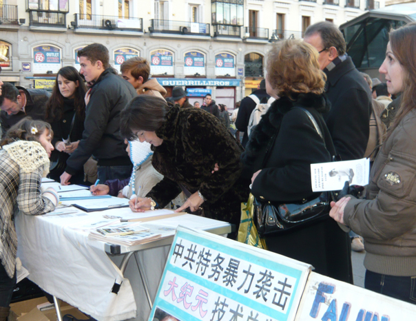 【明慧网二零一二年一月三十一日】农历辛卯年末,西班牙法轮功学员在首都马德里市中心卡约尔广场举行集会,呼吁制止中共迫害法轮功,并声援一亿中国同胞退出中共邪党、团、队(简称“三退”)。