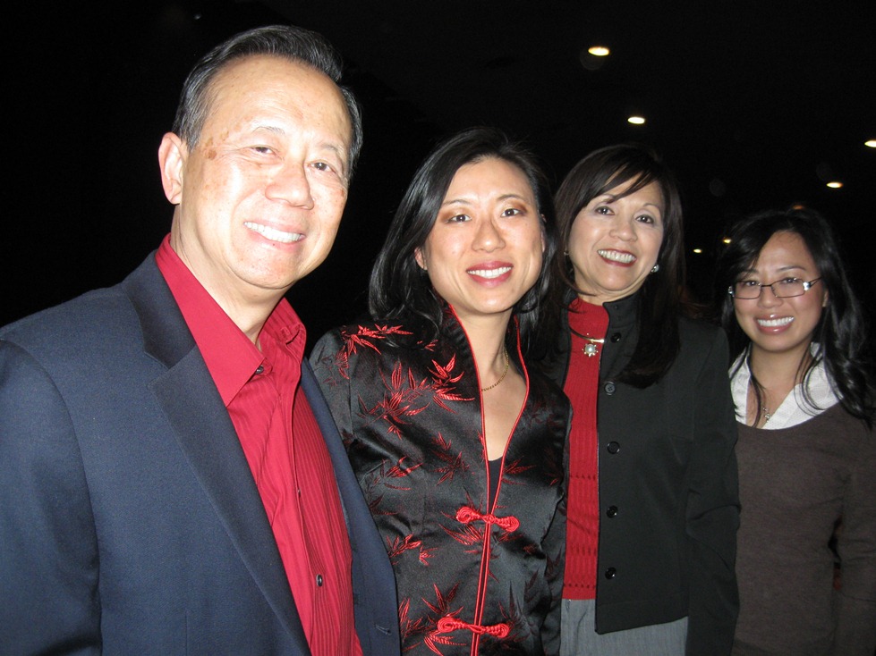 华裔医师陆孝先偕同太太(右二)与二个女儿都表示非常喜爱神韵。