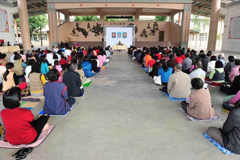 二零一二年元旦一大早,法轮功学员们愉快地忙碌着,这是台湾屏东地区首次召开小型法会。会场是一所学校的户外风雨操场,布置得简单而隆重,十一位学员分享了他们的修炼心得。