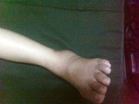 就这样长期的迫害,手脚关节开始变形。在冬天都是用凉水洗澡,导致关节变形更加严重。最后强迫吃药。吃了药后却一个月也吃不下饭,一下子瘦的皮包骨头,然后强迫去打针。打第一针的时候,肚子疼的直不起腰来。当时不知道监狱有打毒针的事。最后发展到全身无力,手脚严重变形,行动不方便,几乎动不了。身体都这样了还被强迫到工厂每天拼死拼活的干活,晚上回到宿舍还要逼写新的认错体会,不然就不让睡觉。