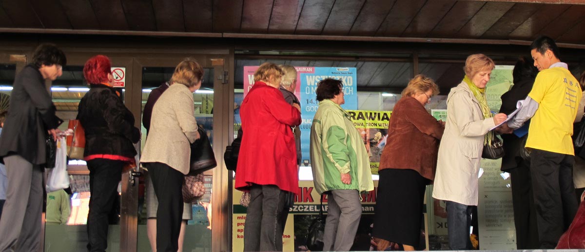 ![]() 波兰民众纷纷找出自己的身份证号码,准备签名反对中共活摘法轮功学员器官罪行 |