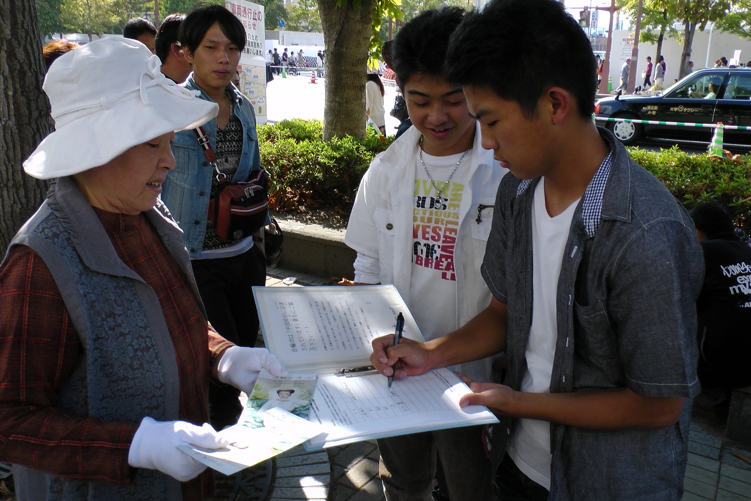 ![]() 日本东广岛市第二十三届酒节上,游客签名谴责中共活摘器官 |