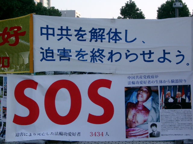 ![]() 日本中部地区法轮功学员在爱知县名古屋市(Nagoya,Aichi-Prov.)的最繁华地区“荣”挂出法轮大法弘传世界、揭露中共活摘法轮功学员器官暴行等真相图片 |