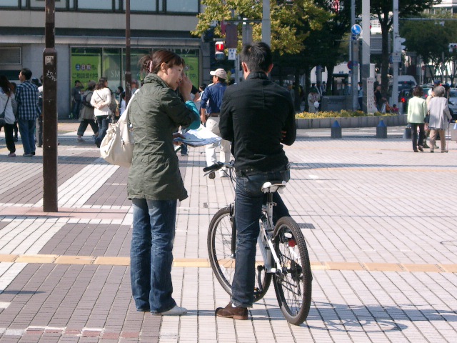 二十日的早上,学员们刚打好横幅,就有一位先生走过来说,他知道法轮功,他曾经在中国上海工作过,他对法轮功在中国受到迫害深表同情。临离开时,他无论如何非得交给学员一千日元,说是他的一点心意,用于制作更多法轮功的真相资料。