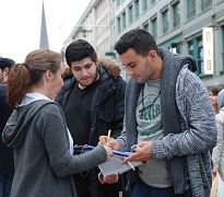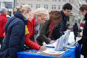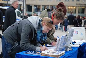 ![]() 十月十三日,汉堡学员在Reesendamm桥举办信息日活动,揭露中共活摘法轮功学员器官的罪行,民众踊跃签名支持制止中共的恶行。 |