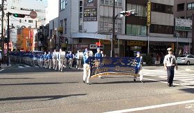 二零一二年十月二十一日,日本法轮功学员在国际大都市横滨举行了反迫害游行,向日本民众揭露中共迫害法轮功的真相。