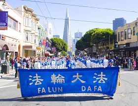 二零一二年十月七日,北加州法轮功学员应邀参加了旧金山一年一度的哥伦布节庆游行。