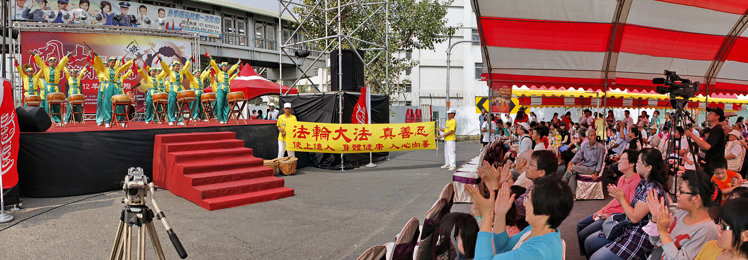 “二零一二冈山羊肉文化节”开幕,法轮功学员组成的唐鼓队演出
