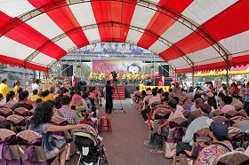 二十七日,文化节举办踩街记者会,袁区长邀请法轮功学员与会,并担任踩街团队引领牌志工,并由身着金黄炼功服的腰鼓队压轴表演,带动整个街道的热闹气氛至记者会场。