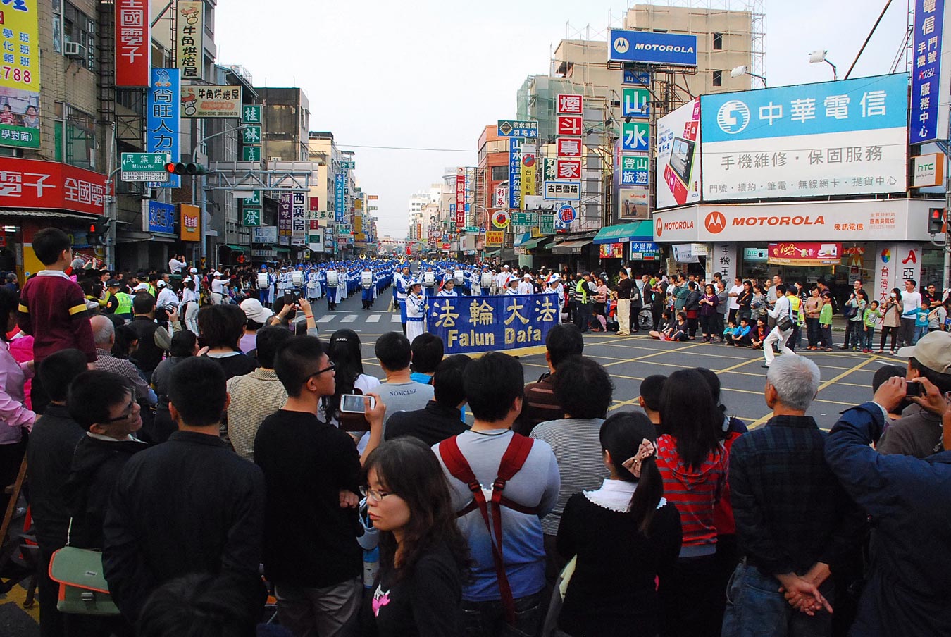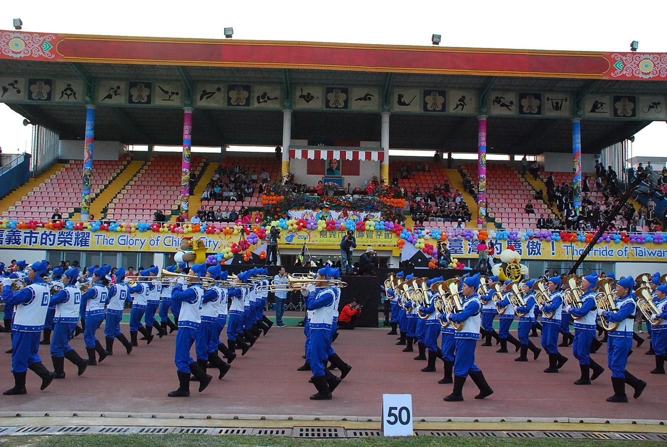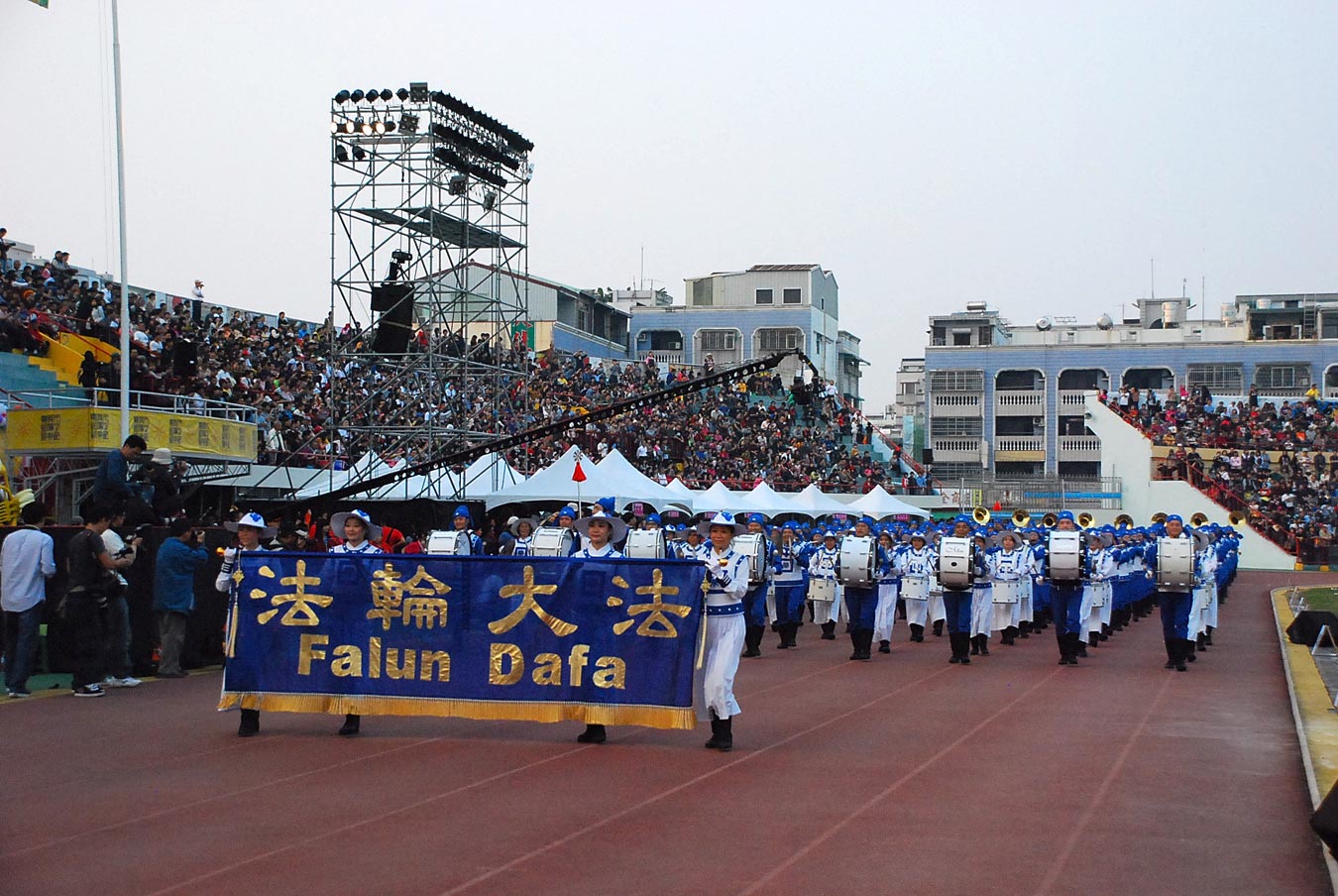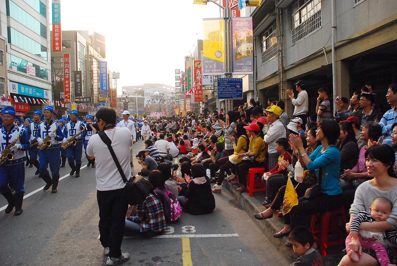 台湾法轮大法天国乐团由二百五十位团员组成,军容壮盛,管乐节主办单位特别安排其为压轴队伍。天国乐团从嘉义市中山路的起点走到体育场,全程近三公里。嘉义市民再次看见这支雄壮的军乐队,都雀跃不已。