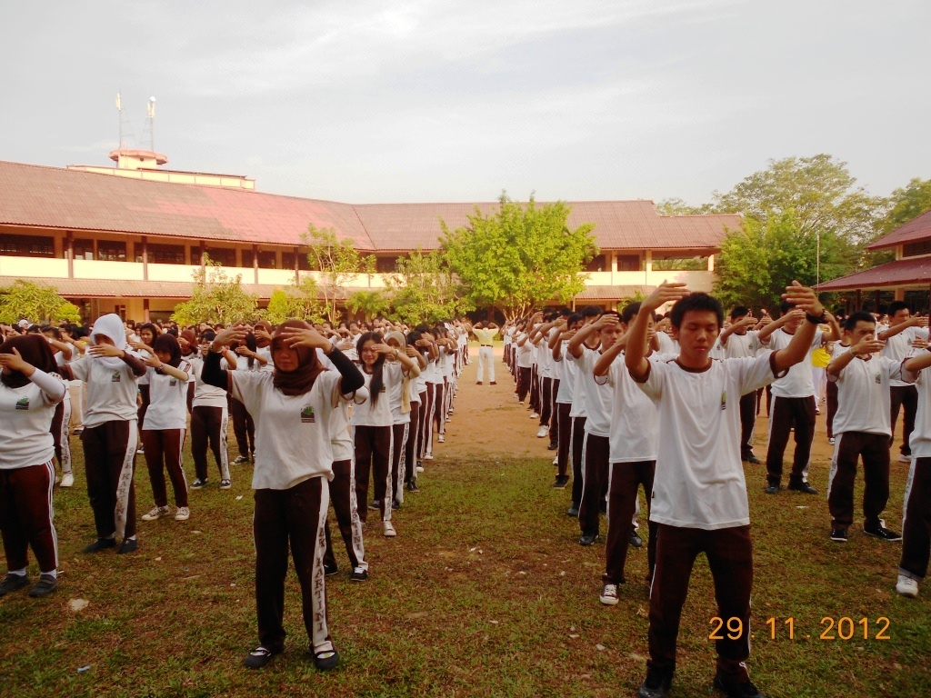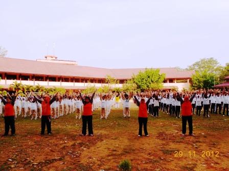 十一月二十九日的活动中,法轮功学员们为全校师生们展示了优美的五套功法。早上七点,四百多名师生便聚集在操场上,集体学炼法轮功。法轮功学员们现场为师生们纠正炼功动作。