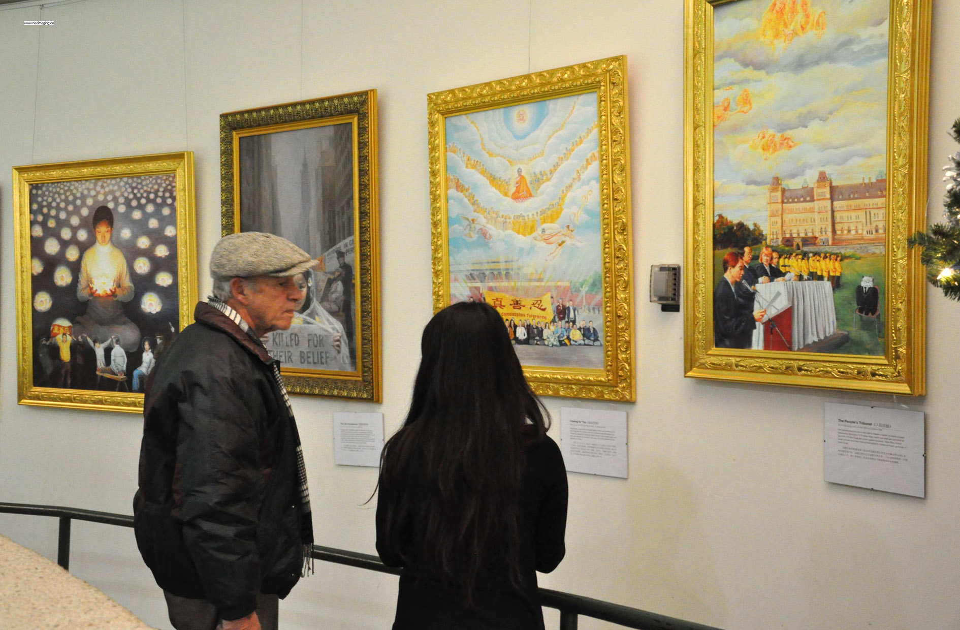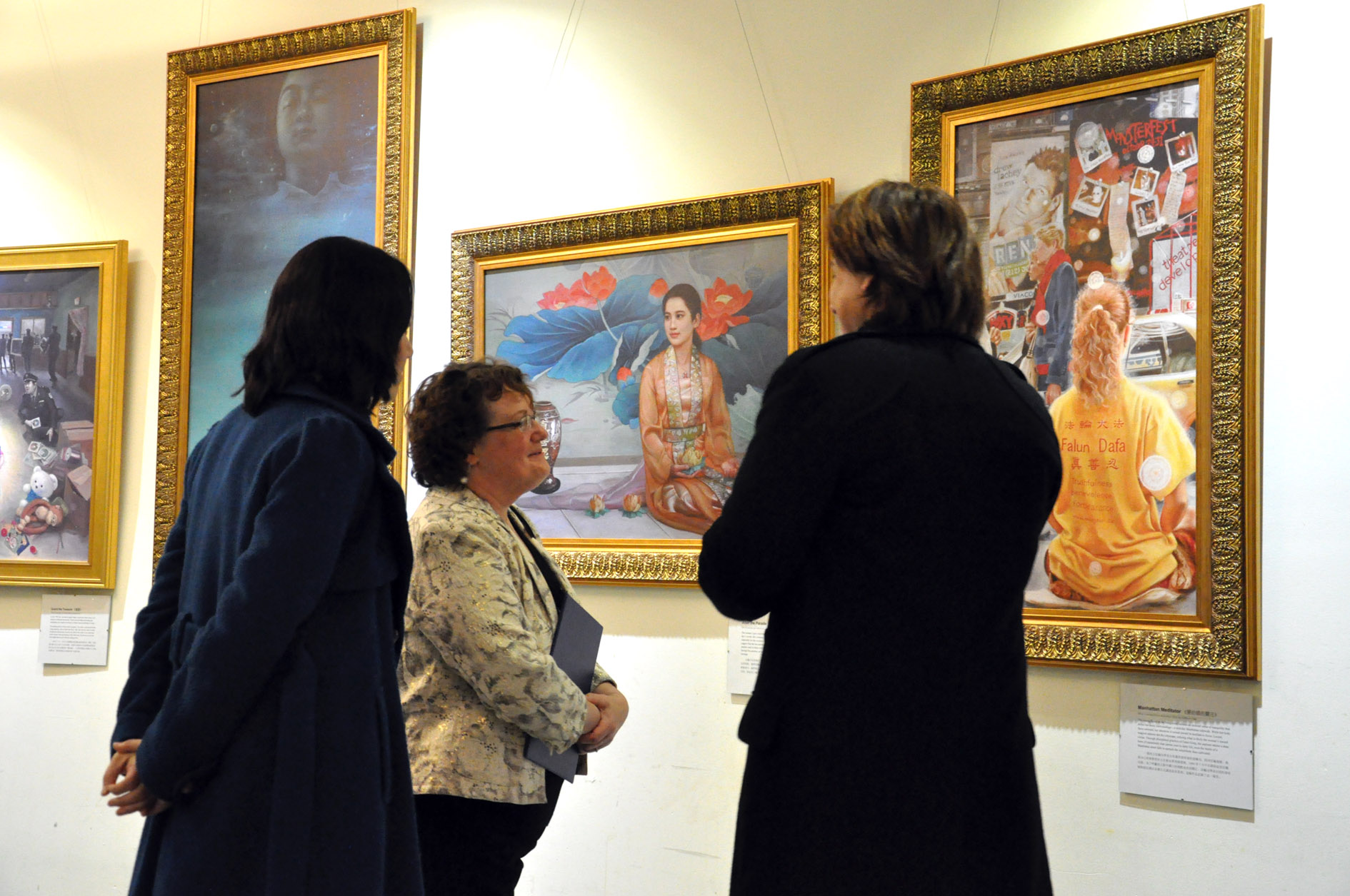 克里斯滕森表示,在来参观美术展之前她对法轮功一无所知,工作人员的讲解令她明白很多。画展“整体给人的感觉是,内心平静、坚强,是很受鼓舞的经历。”她说,她会在社区讲述这些事情。
