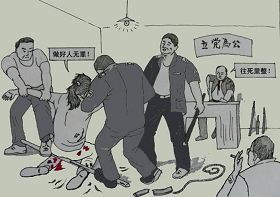 二零零一年春,闫海栋被警察抓到镇里,逼问真相资料哪来的,把他下身扒光,七八个人围着暴打,被打得死去活来。后来闫海栋逃走,夜里他们把南高洛村路口都把上了人,每人拿根电棍。涞水县委书记李老铁下令说,见着他就打,打死算白死。