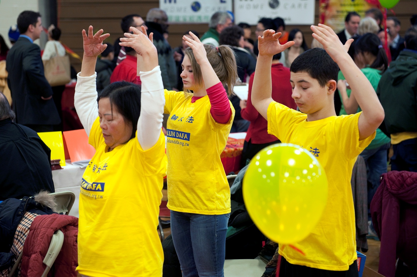 ![]() 法轮功学员在昆市中国新年联欢会上示范功法 |
