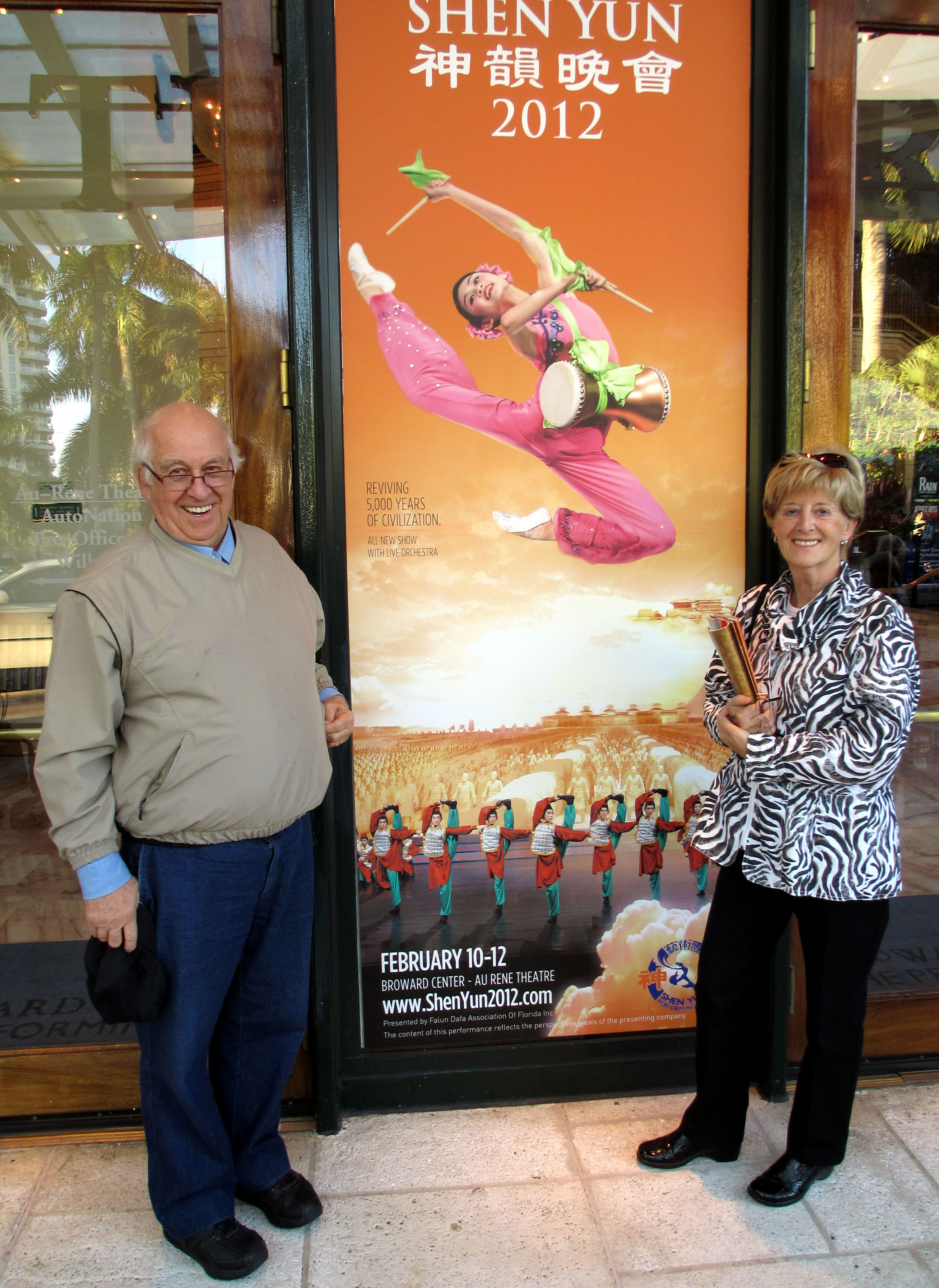 杜瓦尔夫妇早就听说过神韵,也一直想看,可今年神韵在蒙特利尔一票难求,于是他和太太决定来佛罗里达看。一个月前他们就买好票,一直期待着演出。