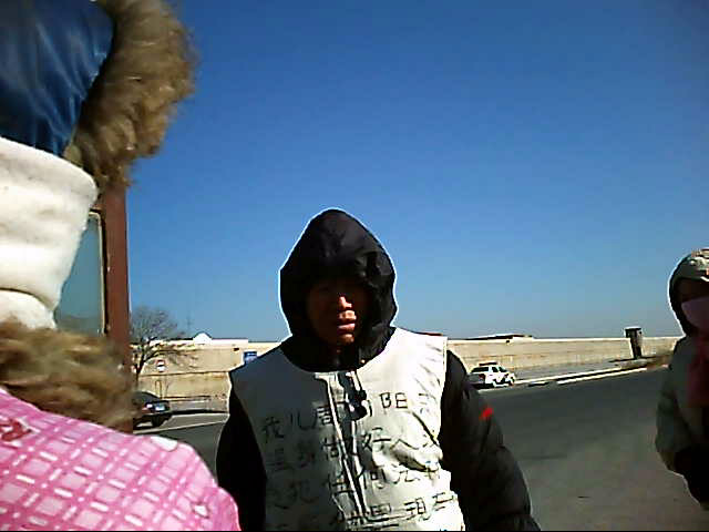 二零一二年二月十七日,周向阳的老父亲在再次要儿子无结果的情况下,穿上状衣站在滨海监狱门口,等待监狱能尽快答复。周向阳父母是经过一天半的奔波,驾驶自家的手扶拖拉机到达天津市港北监狱(现更名为滨海监狱)的。