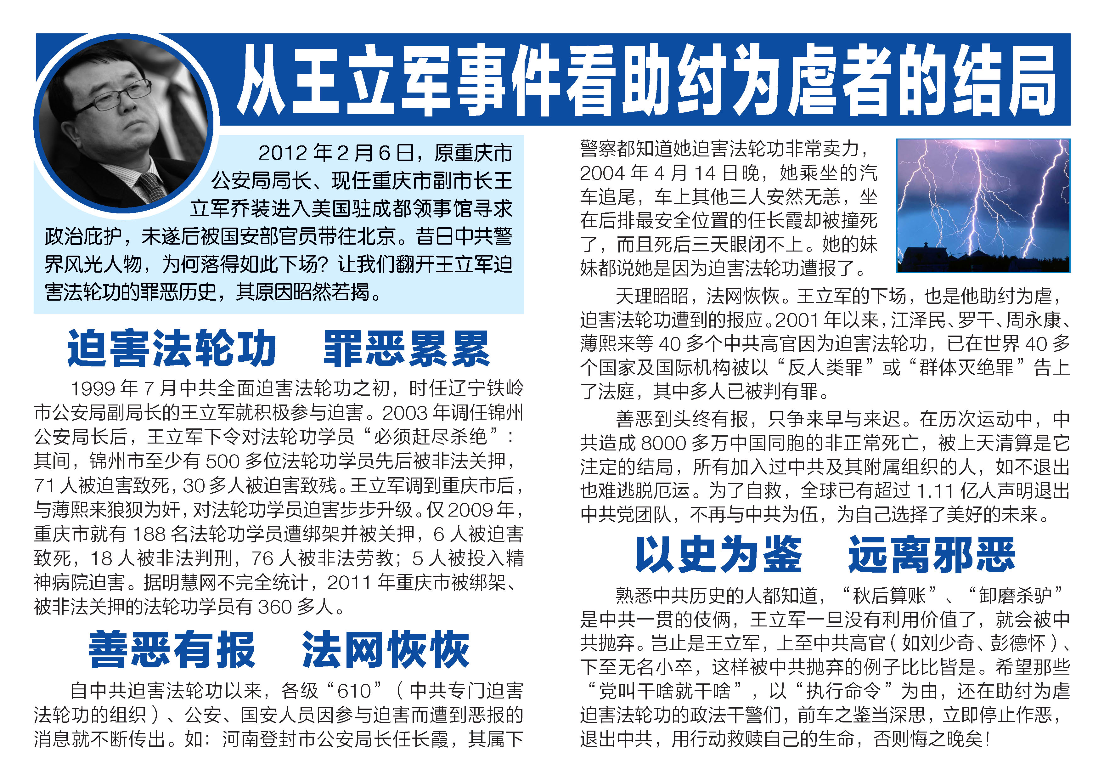 【明慧网二零一二年二月二十九日】A4纸,单面。