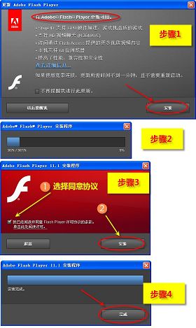 Flash Player 安装后默认是启用自动更新的,当有新版本的时候会有提示,下面简述一下安装新版本的步骤: