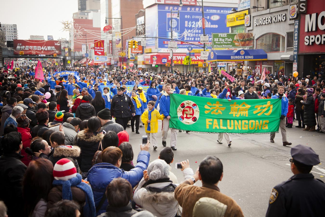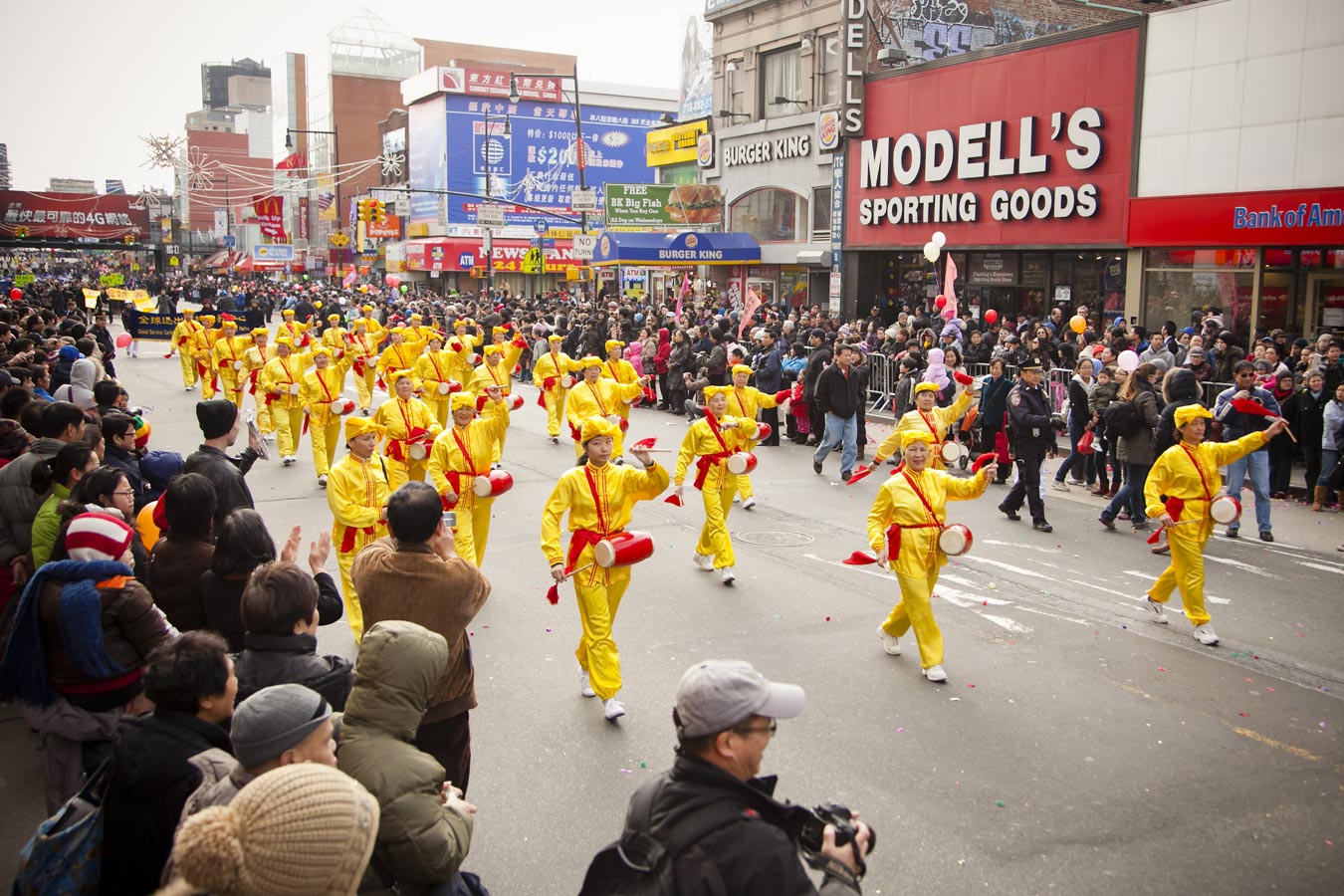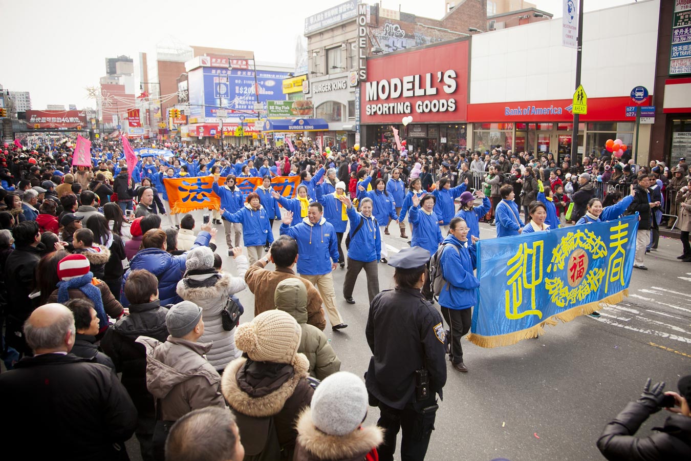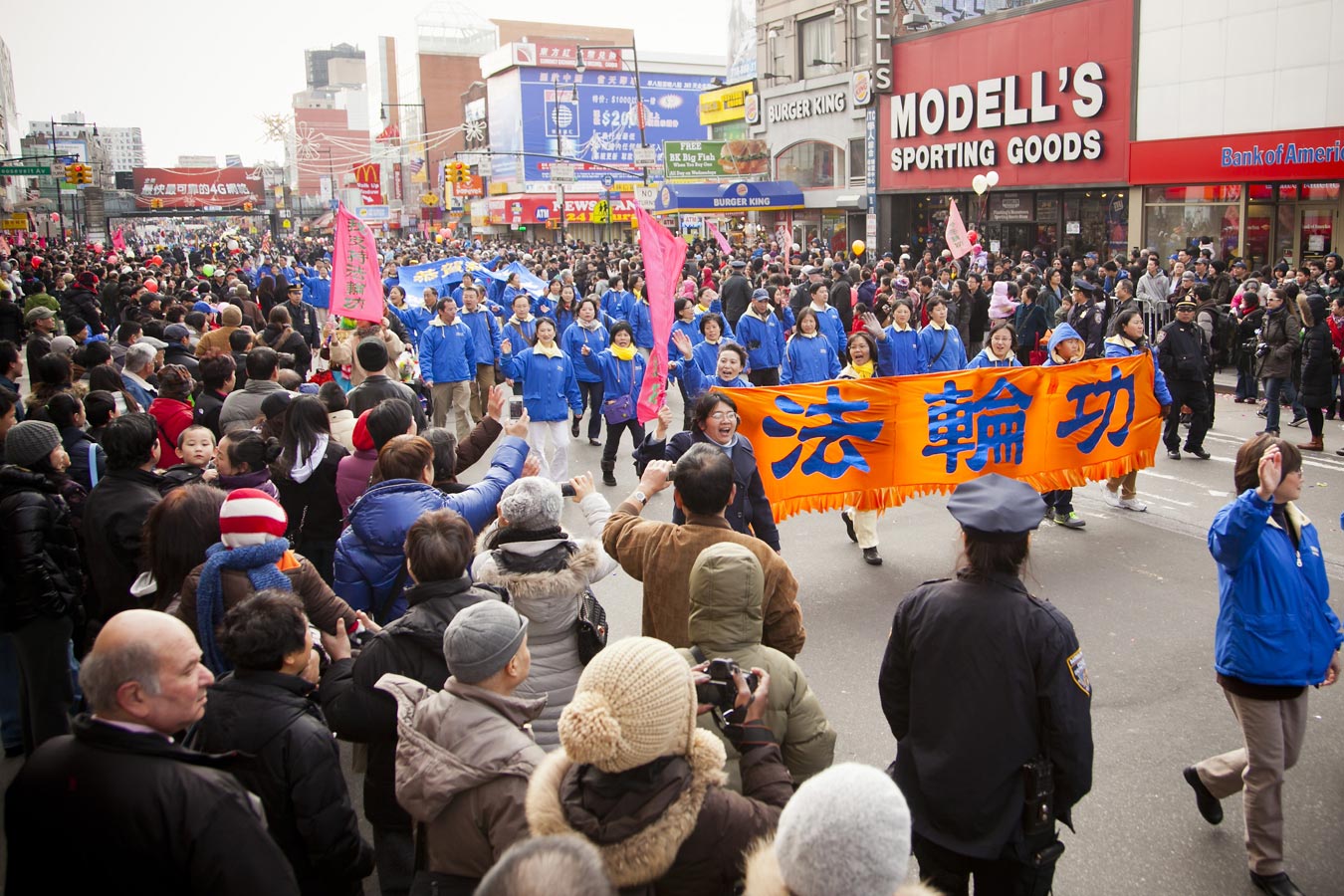 |  法轮功学员参加纽约法拉盛新年游行,受到热烈欢迎 |