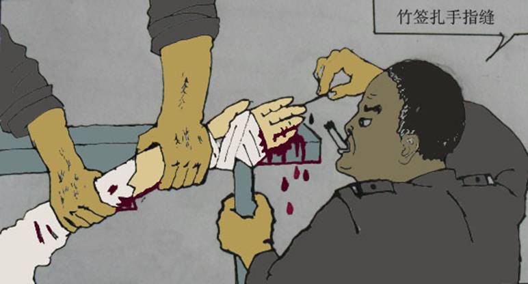 ![]() 酷刑演示:烟头烫 | ![]() 酷刑演示:针刺指甲 |