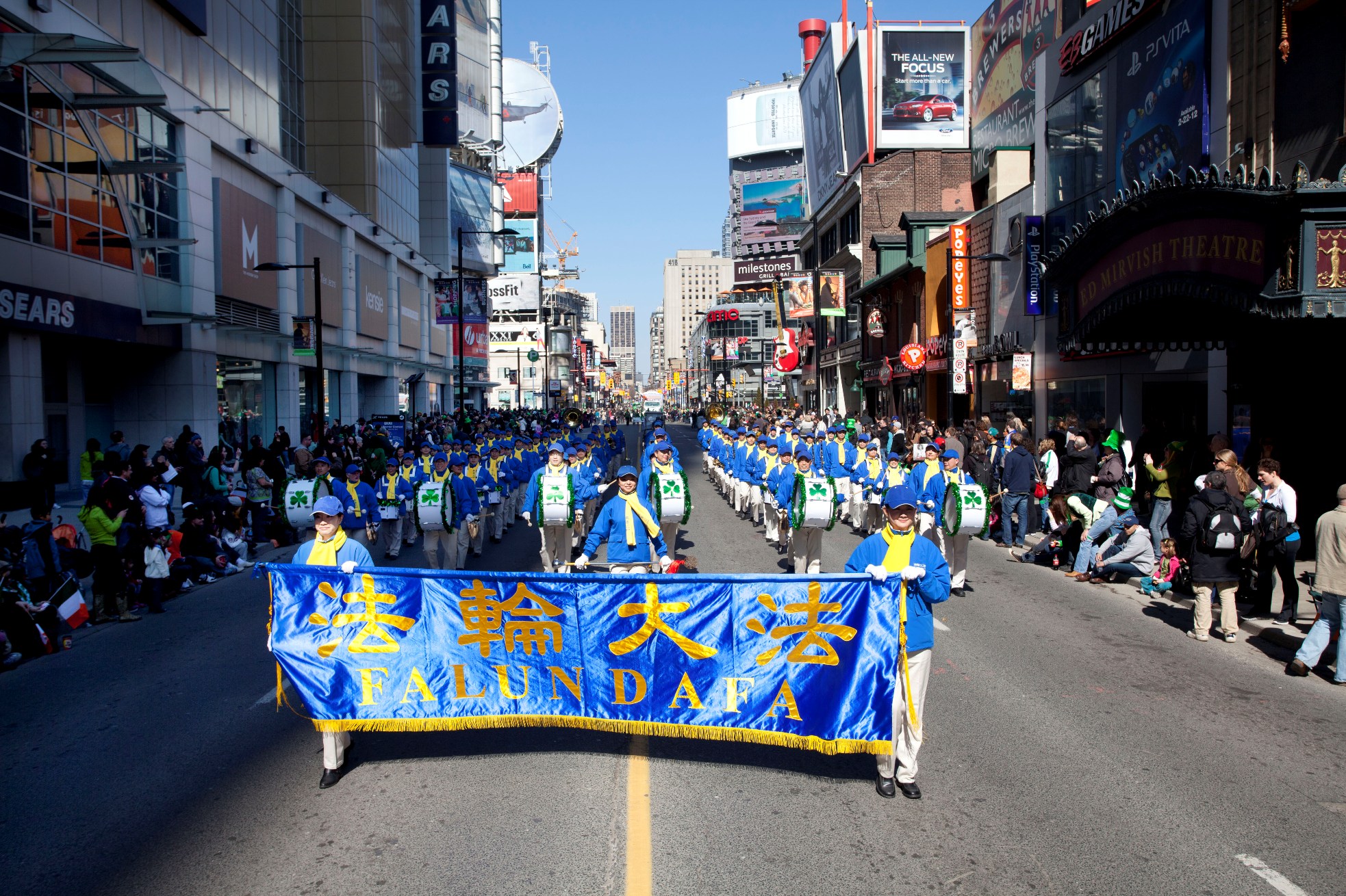 【明慧网二零一二年三月十二日】(明慧记者章韵多伦多报道)二零一二年三月十一日中午,加拿大多伦多市第二十五届圣派翠克(St. Patrick)节游行在市中心举行,圣·派翠克节是爱尔兰国家最盛大的节日,爱尔兰人不论身在何方,都要举办盛大的庆祝活动。如今这一活动已遍布欧洲、美国、加拿大、澳大利亚。这个北美一年一度的爱尔兰移民的传统节日游行上,由法轮功学员组成的多伦多天国乐团连续六年应邀参加。天国乐团的演奏获得了沿途观众的欢迎和赞赏。有观众表示:法轮大法的乐团永远是最好的!(Falun Dafa Band is the best forever!)