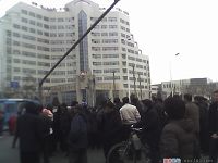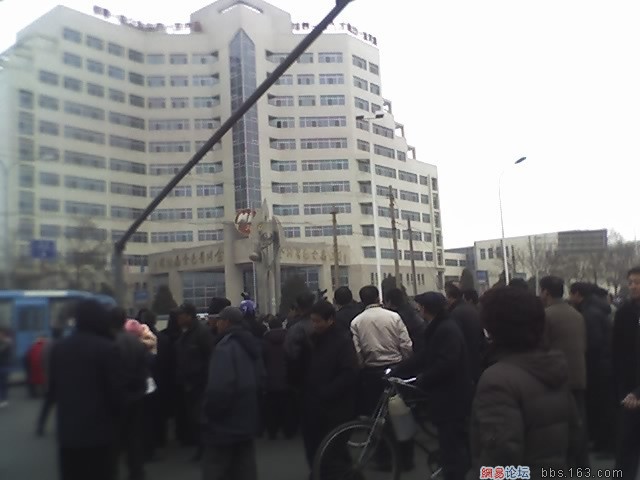 2007年12月9日早8时,金川公司退休职工在金昌办公大楼表示对李永军的不满并贴出横幅‘把李永军赶出金昌“