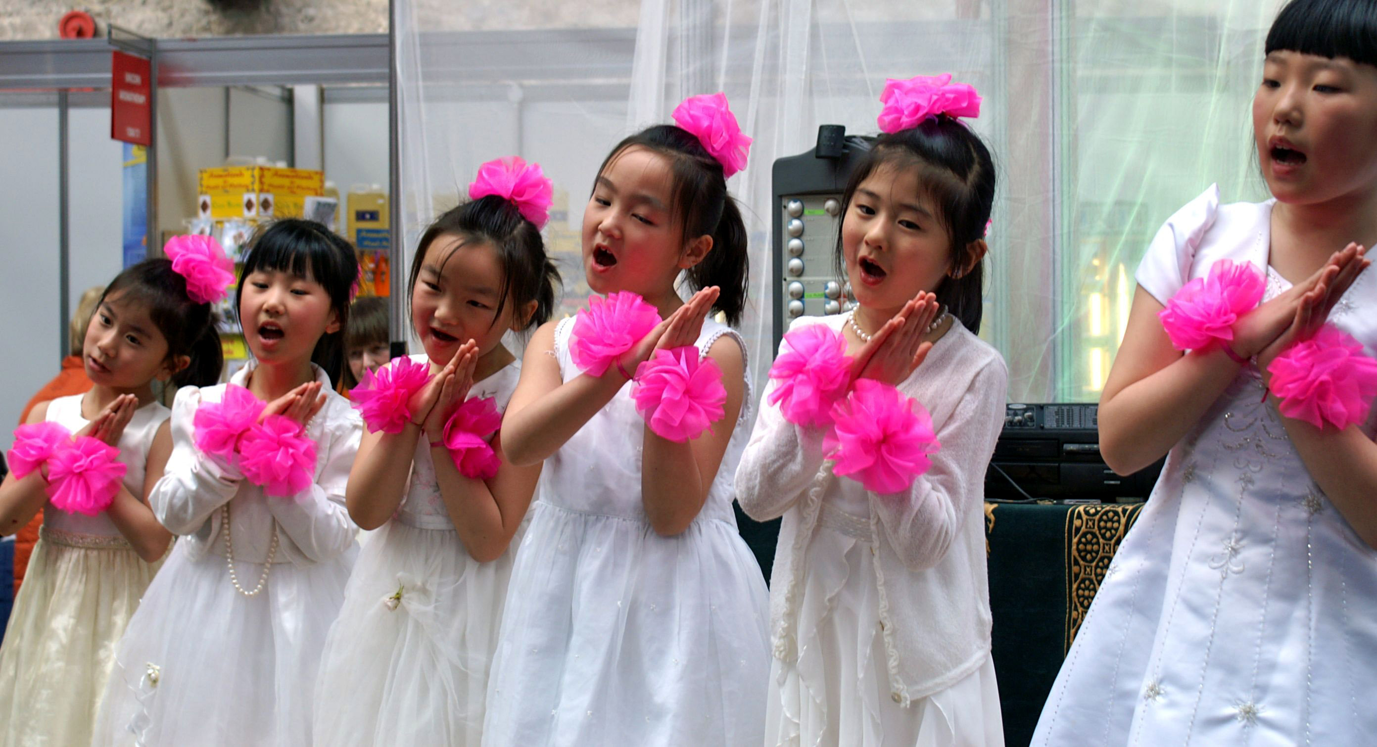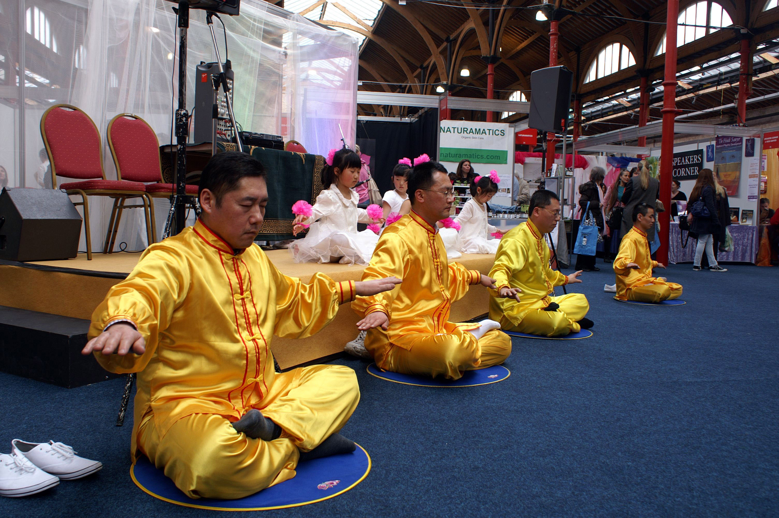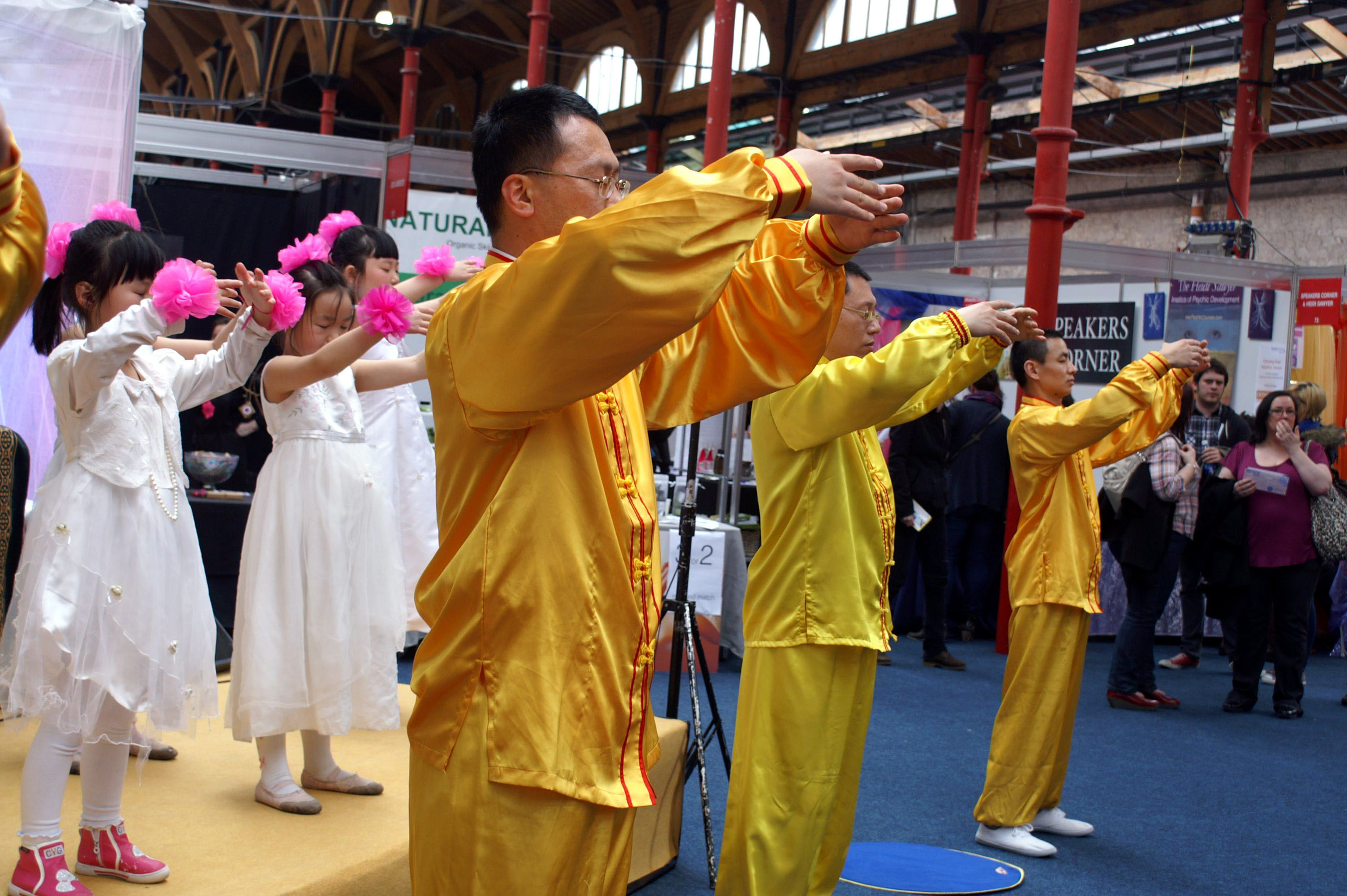 三天的时间里,法轮功学员表演的功法演示,法轮功小弟子表演的唱歌和舞蹈都大受欢迎。而且主办者特别邀请男学员表演的中国鼓舞,作为开幕式和闭幕式唯一的表演节目。威武有力的鼓声,激荡在整个展览的大厅里,给人带去了法轮功学员的慈悲和正念的力量。