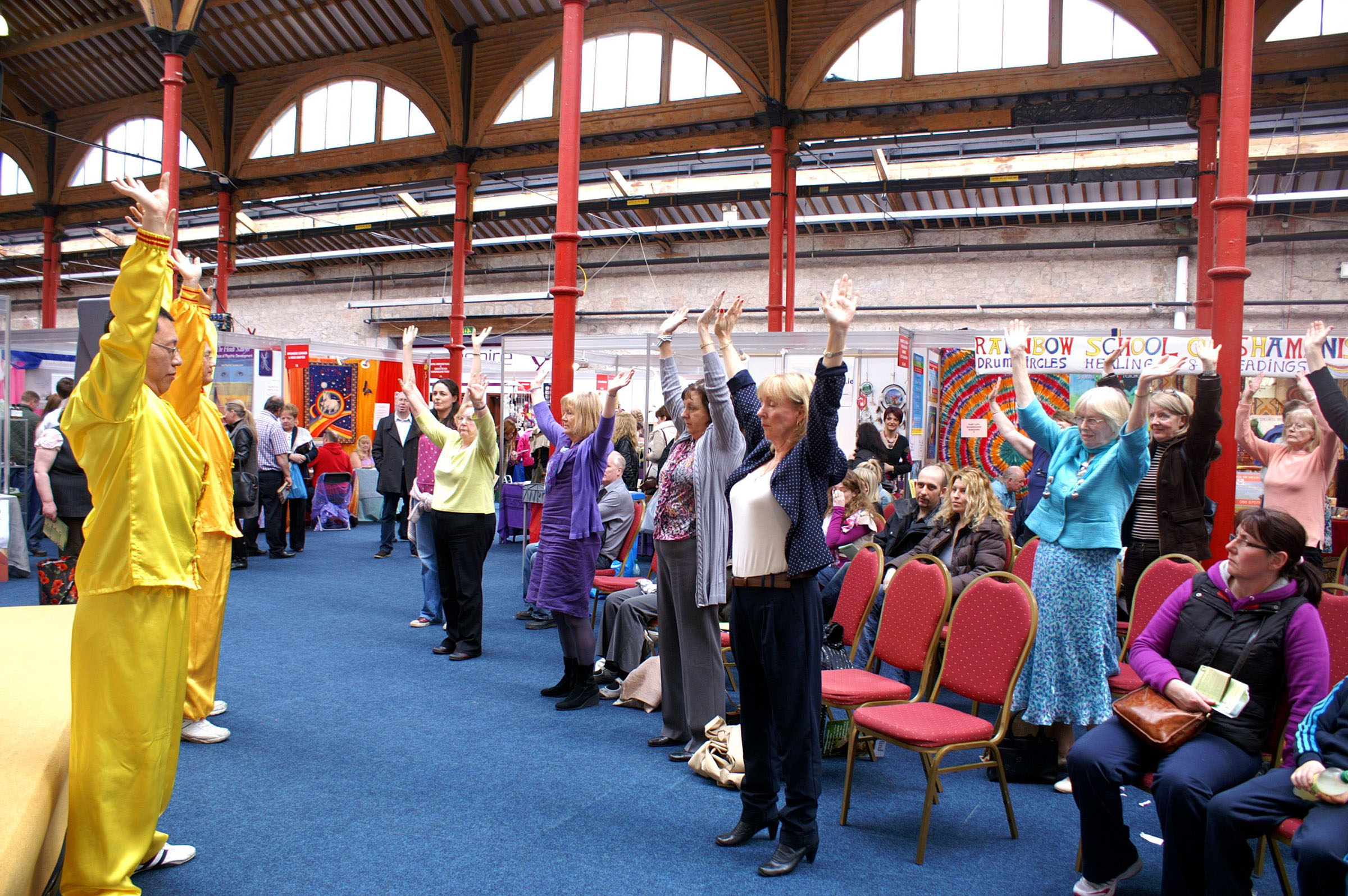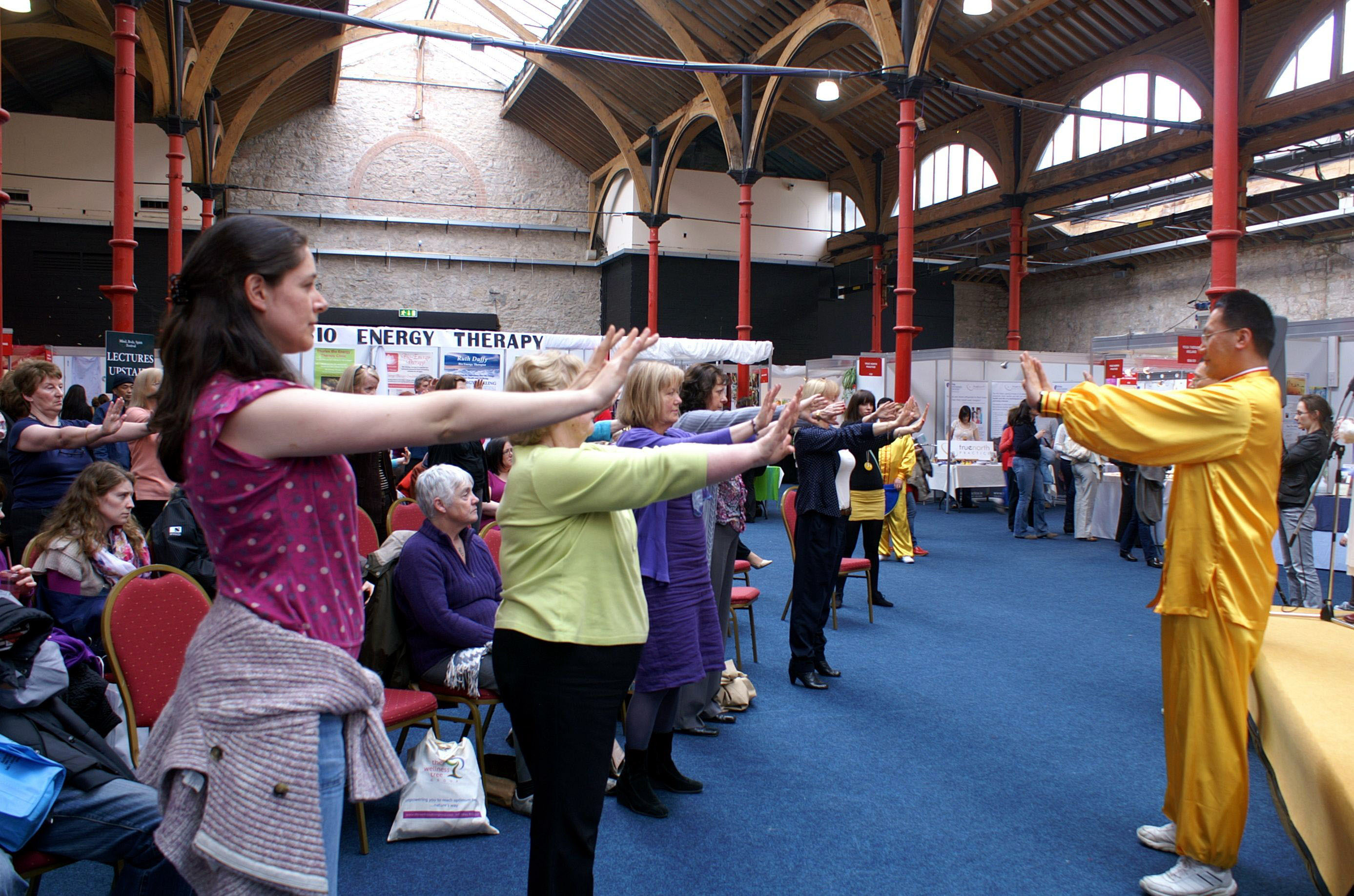 爱尔兰的“身心灵”展览一年春秋举办两次,法轮功学员多年受到主办者的邀请,参加展览。今年同往年一样, 法轮功学员展示了功法演示、鼓舞,以及大法小弟子的舞蹈表演大受欢迎;和以往不同的是,人们从观看者,变成了参与者,非常多的人表示会来参加当地学员举办的免费教功班,学习修炼法轮功。