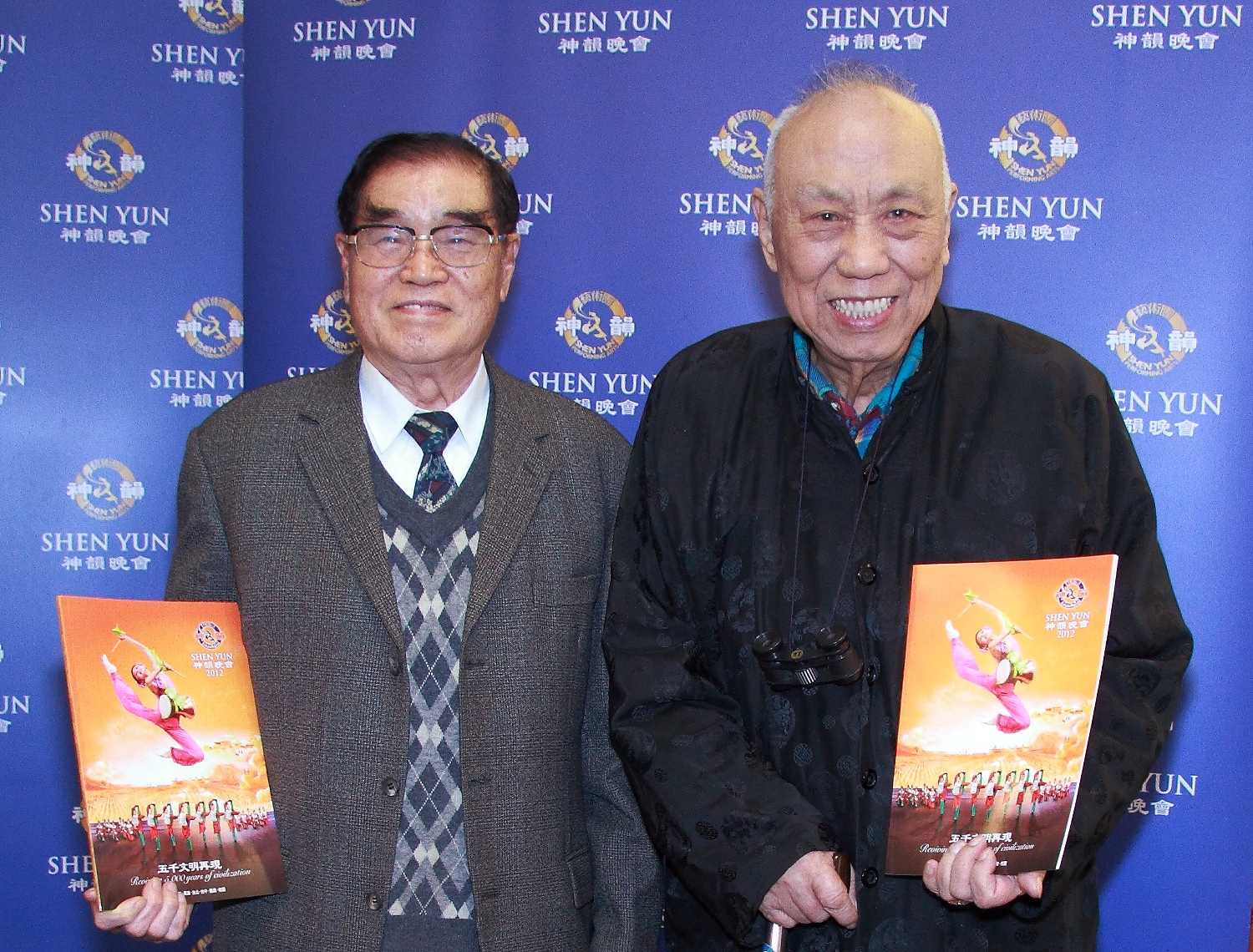 高龄八十九的退役上校杨琅,三月二十日晚上,在朋友的邀请下,第一次观赏神韵的演出,杨琅是陆军黄埔军校二十期的退役军人,平时喜欢欣赏京剧及艺术表演,年轻时也粉墨登场,常扮演老生的角色。