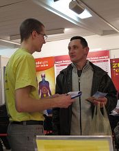 在春季健康博览会上,波兰法轮功学员在专题报告会议室,专门向波兰民众再次做法轮大法介绍演讲,很多人在报告后专门来到法轮大法展台上索取相关资料,法轮功学员为此准备了波语,英语,德语,法语和中文等多语种法轮大法传单,并专门制作了一份详细介绍法轮大法的打印资料,让更多的人们了解法轮大法。