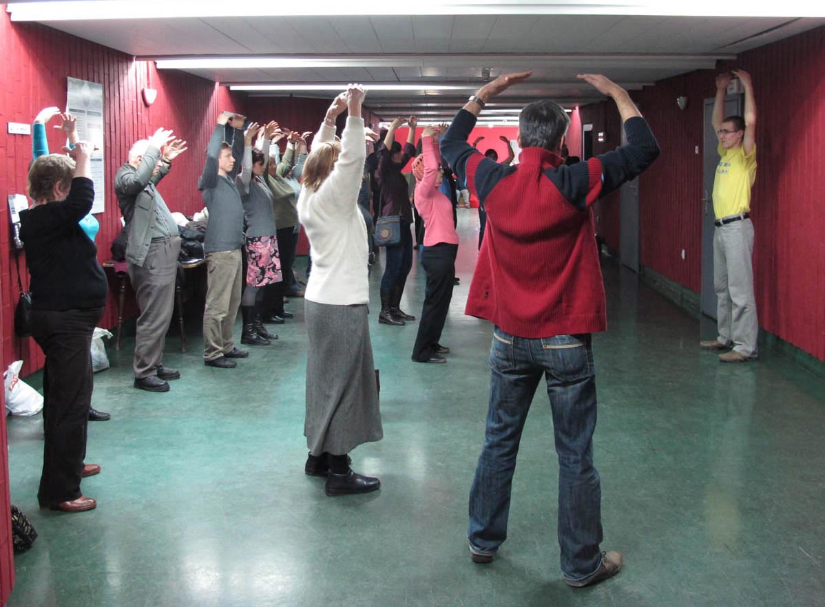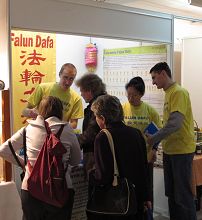 也有很多人谈起阅读《转法轮》的体会和感受,大部份人都感到十分的新颖,好象推开一扇大门走进了一个全新的世界,完全是从来不知道、从来没有听说过的,但也正因为如此,也有困惑和不解,一位女士就“职业教授太极功法和不二法门问题”和法轮功学员交流了很长时间,法轮功学员向她推荐法轮大法波兰语网站上的其他大法经文,并鼓励她只要不断阅读,自然都会理解的,同时也欢迎他们有问题时,能联系当地法轮功学员,共同阅读并交流各自的体会。