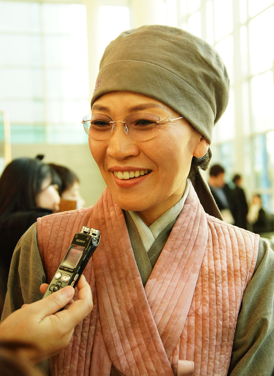 韩国佛教音乐合唱团团长兼指挥金淳英于二月二十八日晚,带领八位佛教信徒观看神韵在大邱市的演出后,三月一日下午又带着三十九位佛教界知名人士观看神韵在大田的演出。她说,“本来想向更多的人介绍神韵演出,可惜的是时间太紧迫了,没来得及向更多人推荐。”