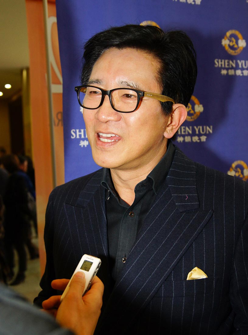 他表示,神韵演出不仅仅给人展现文化艺术,中国传统文化博大精深,用舞蹈剧表现出来,加上背景动画天幕,让神韵的观众处于无限想象之中,神韵有这样的力量。并期待韩国在演出文化方面,也能得到启示和灵感。
