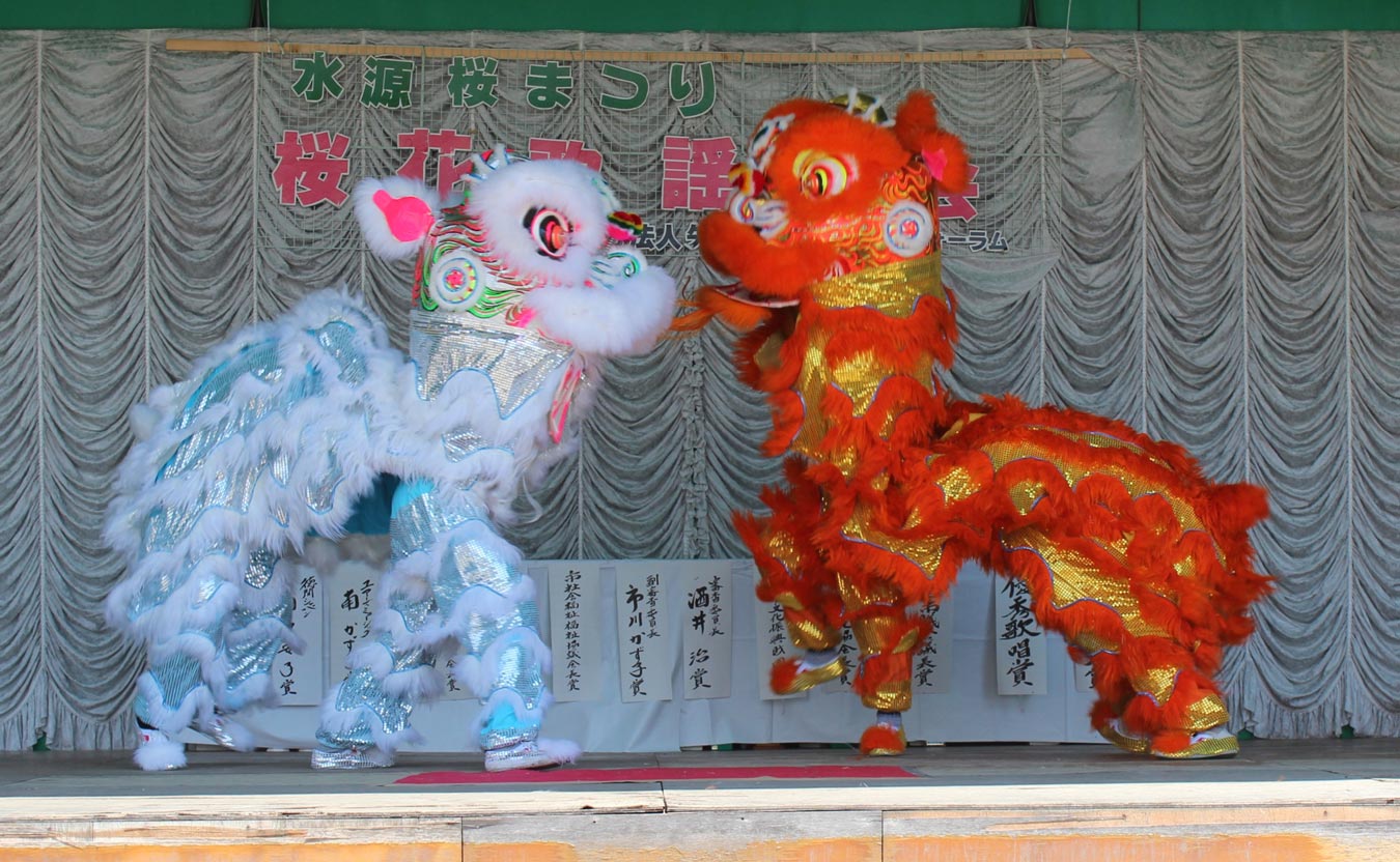 这两天的中午,法轮功学员们在舞台上的文艺表演,吸引了很多来赏樱花的人。明慧学校的法轮大法小弟子们表演了扇子舞和彩绸舞。女孩子们的纯真、可爱,加上优美的舞蹈,赢得了人们的阵阵掌声;法轮功学员们祥和舒缓的法轮功功法表演,带给人们宁静美好;最后的压轴表演狮子舞,让人们大开眼界,原来两个人可以把一头狮子表演得惟妙惟肖。两头狮子和观众们还有很好的互动,很多观众拿出手机相机拍照。樱花节的主办方――矢作川与三河武士论坛的Kito理事长夫人,在场欣赏了表演。当她看到狮子舞时,竟激动得落泪,一个劲儿地说“谢谢!谢谢!” 舞台表演结束后,Kito理事长夫人愉快地和法轮功学员们合影留念。