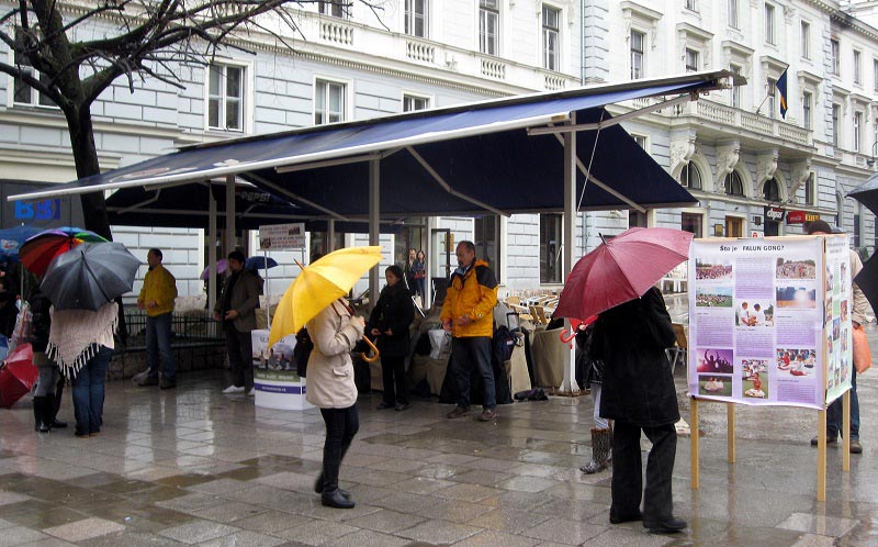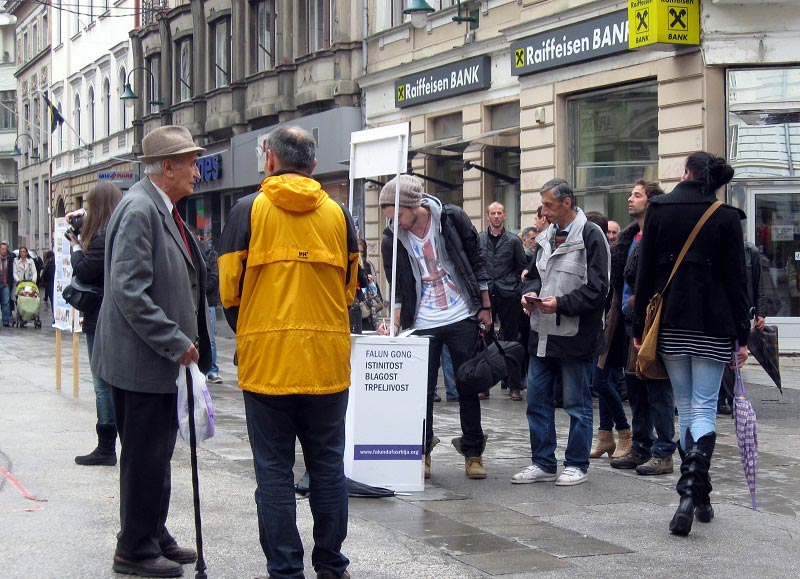 ![]() 在Fra Grga Martic广场上摆设展位讲法轮功真相 |