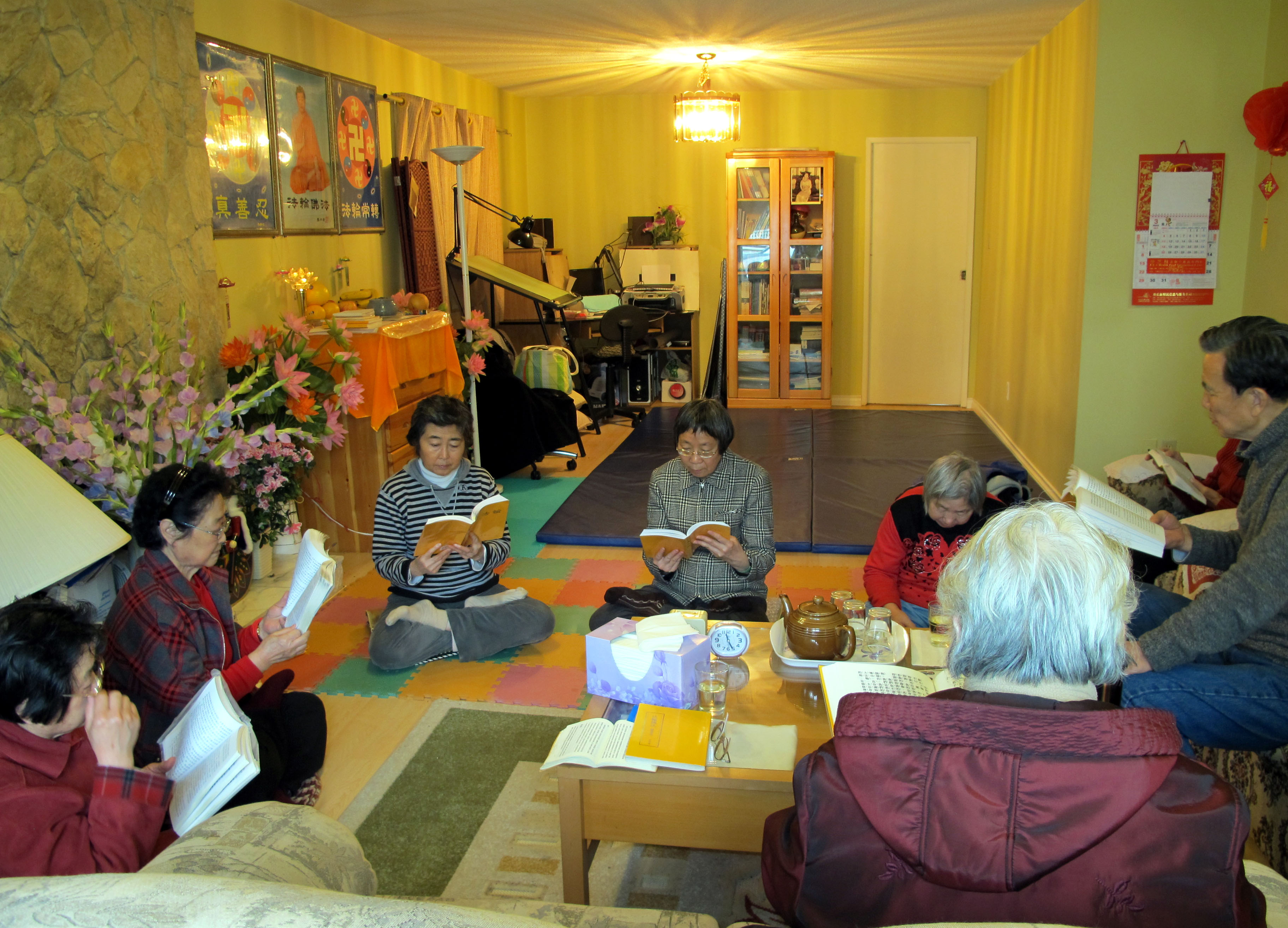 二零零八年在一位同修的建议下,列治文市的部份法轮功学员自动形成了一个老年学法组,张女士也自动成了这个学法组的召集人,张女士家里也成了这个组的活动地点。学法组到现在已经坚持四年时间了,期间相继有六、七个学员随着儿女搬家,去到了另一个城市,但不管离开多远,到了集体学法的这一天,他们仍然会不惜花一个、甚至几个小时乘公共汽车来参加学法。